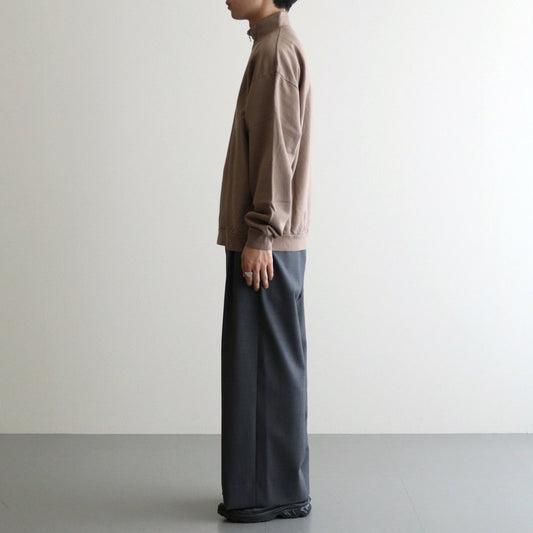 大きく胸元が開いたスキッパーのようなデザインが特徴のワークウェアとなります。ニットなどの上にも着れる様に身幅を大きく作ったボックスシルエット。内ポケットを省く事で胸まわりの張りを無くし、生地の風合いを活かした落ち感のあるシルエットで仕上げています。脇裾にはスリットを加え、着脱のしやすさや動きやすやなどの機能面にも配慮されています。