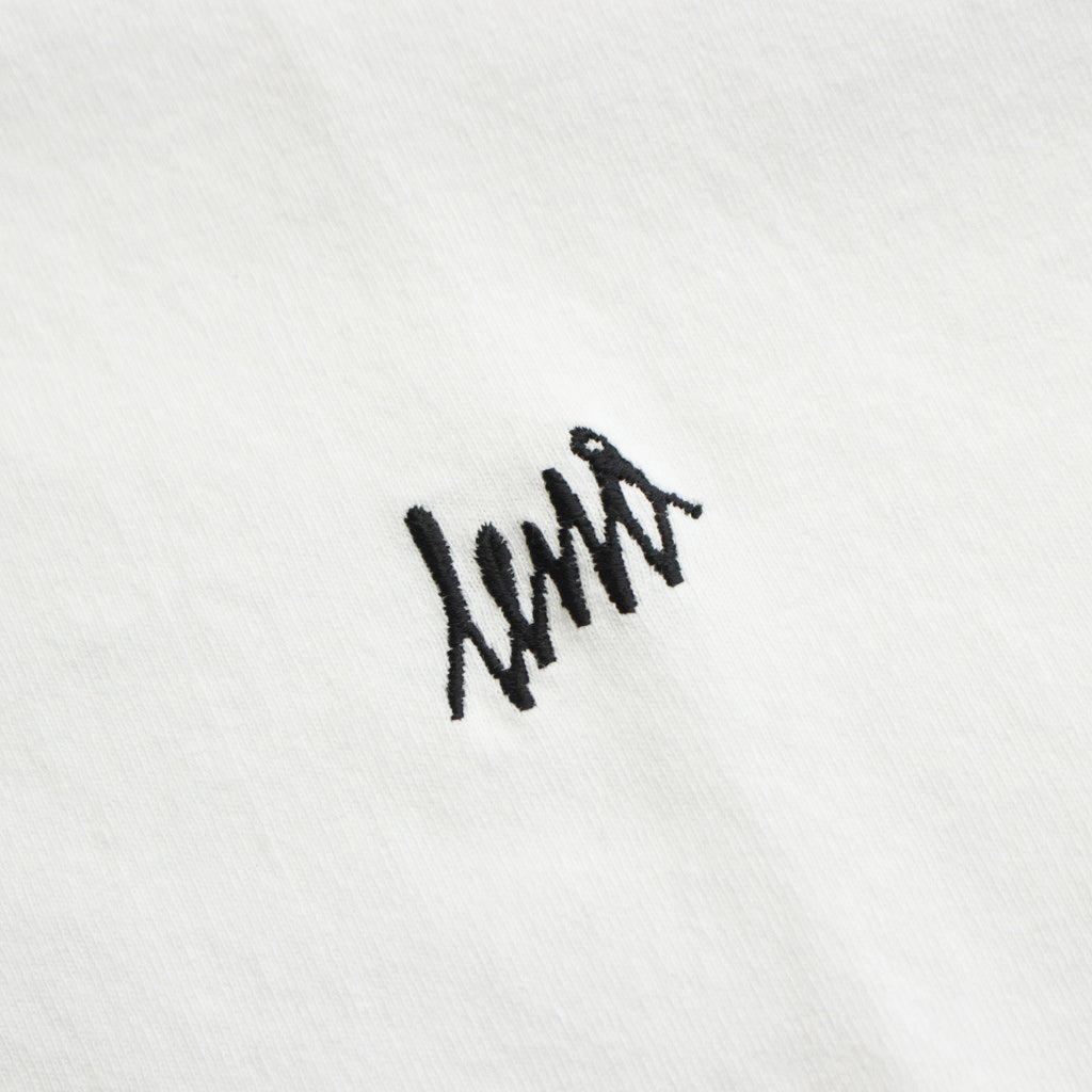 身幅にほどよいゆとりを持たせたベーシックなつくりの丸首Tシャツ。3サイズ展開しているためお好みのサイズ感で選ぶことが可能。左胸に試し書きのようなラフなタッチで描かれたlenoの文字を刺繍で表現しています。