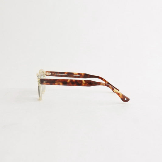 NOCHINO OPTICALブランドを象徴する2カーブレンズはフラットでもなく一般的なカーブタイプでもない仕上がり。美しい曲面で昔の手削りガラスレンズの名残りを感じることのできる光り輝く表面感。レンズシェイプも5mmのフロント厚に、4mmのテンプル厚という繊細な強弱を持たせたクラシックなスタイルです。