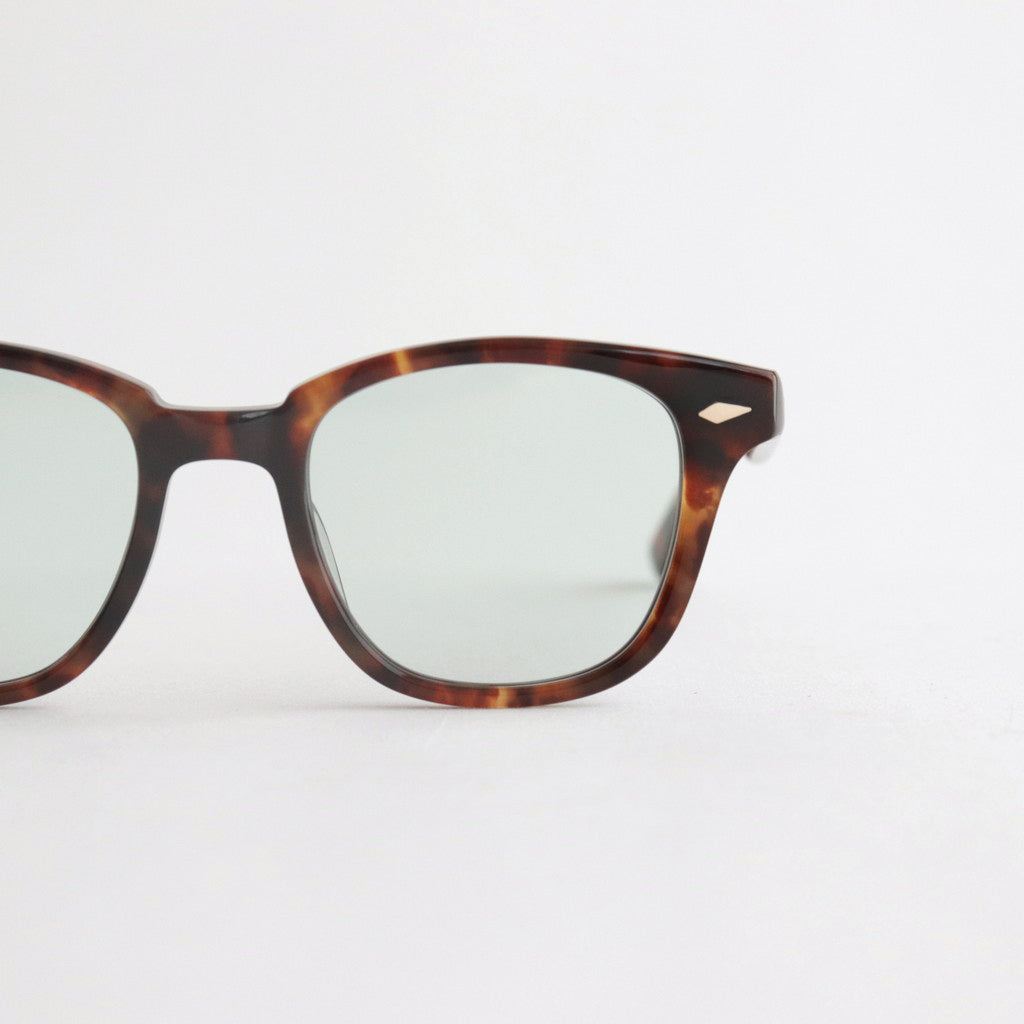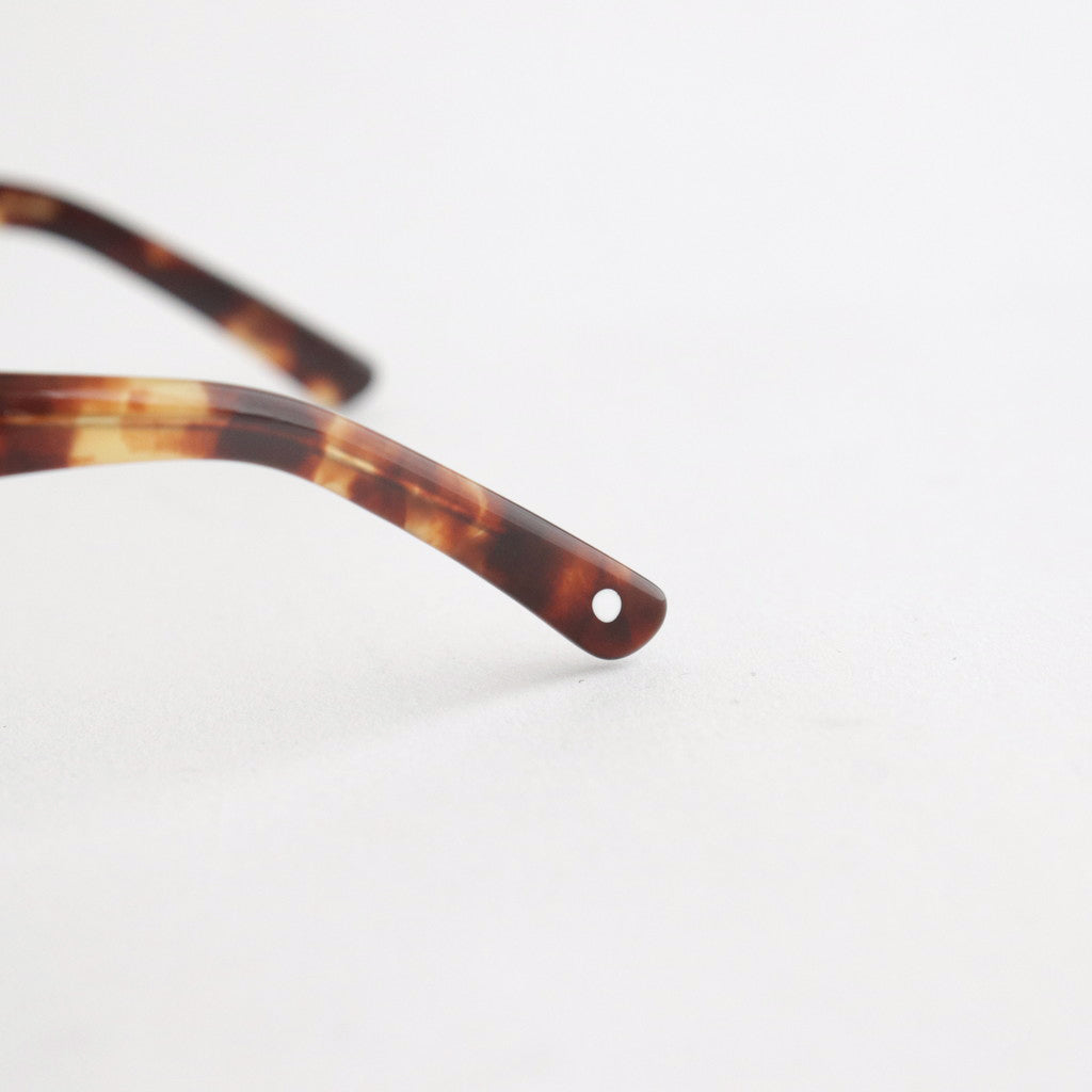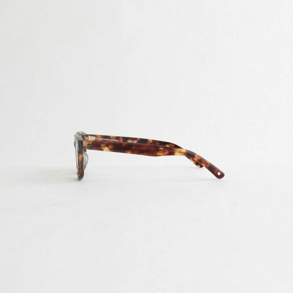 NOCHINO OPTICALブランドを象徴する2カーブレンズはフラットでもなく一般的なカーブタイプでもない仕上がり。美しい曲面で昔の手削りガラスレンズの名残りを感じることのできる光り輝く表面感。レンズシェイプも5mmのフロント厚に、4mmのテンプル厚という繊細な強弱を持たせたクラシックなスタイルです。