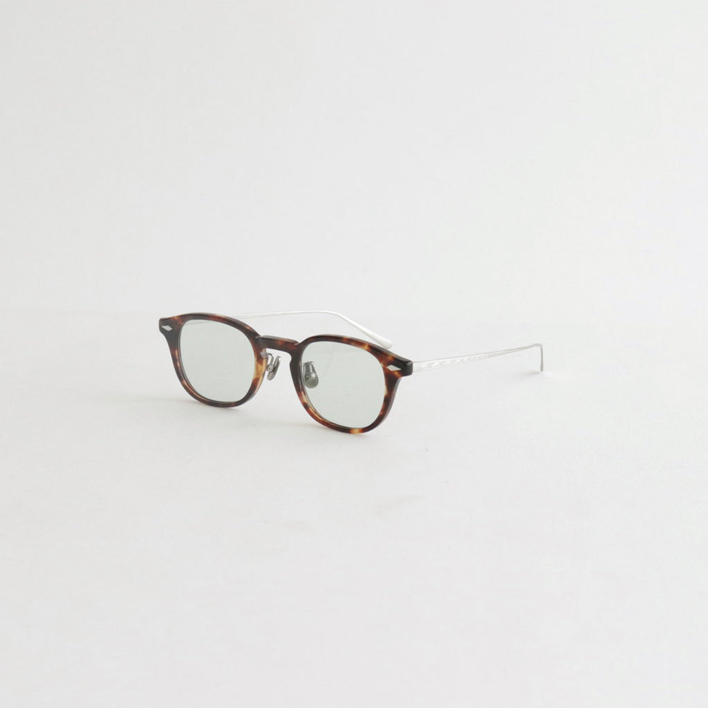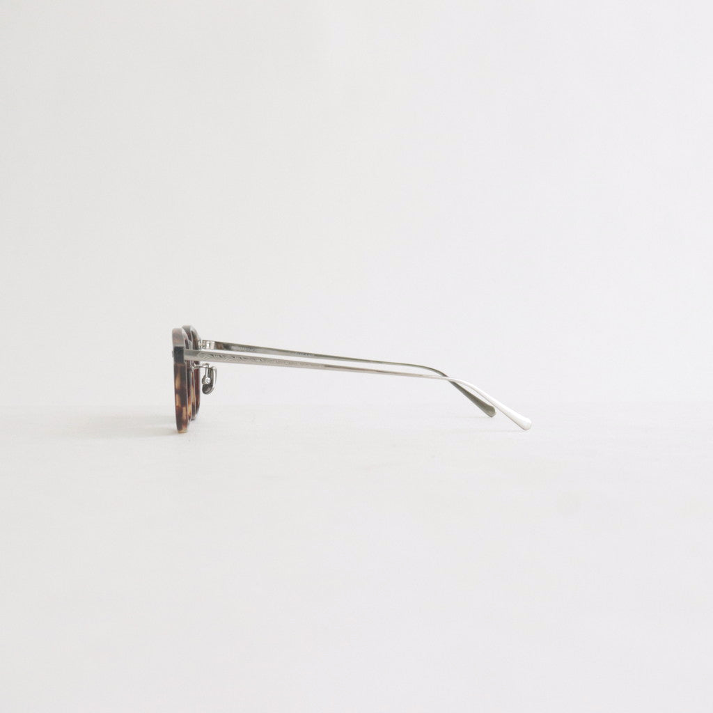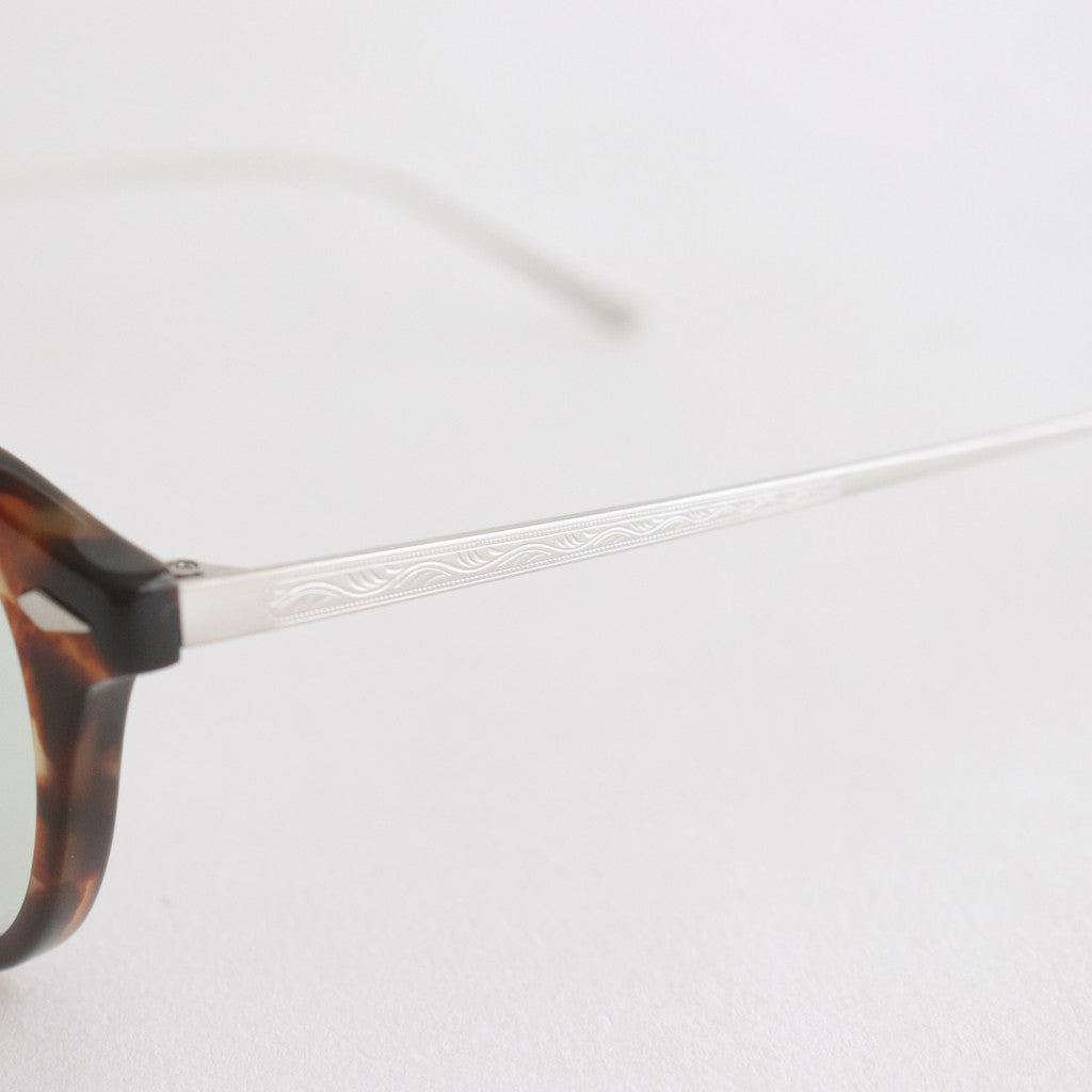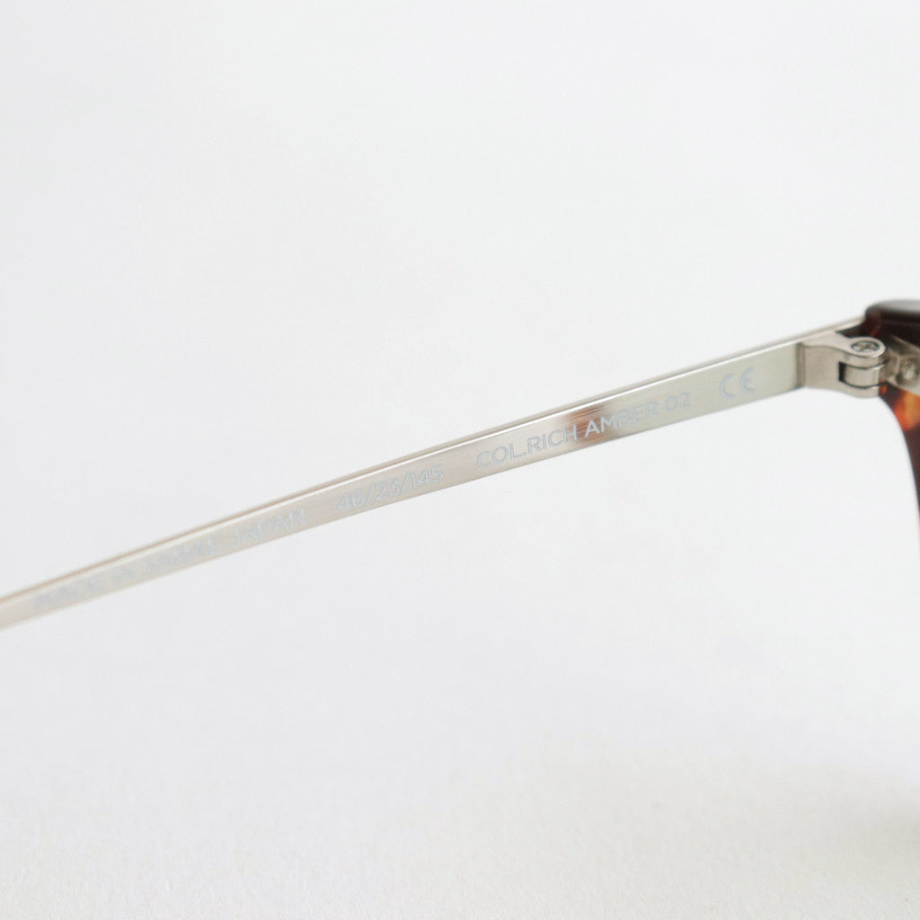 NOCHINO OPTICALのシグネチャーモデルNOCHINOをベースに数ミリに及ぶ細かさでサイズを調整。美しい彫金が魅力のチタン製テンプルと、アレルギーフリーのノーズパットを採用したコンビネーションマテリアルのフレームです。 アジア人の特徴でもあるノーズの低さを考慮し、老若男女多くの方にマッチするクラシックなクリングスを使用。美しい彫金が彫られたチタン製のテンプルがラグジュアリーな表情です。