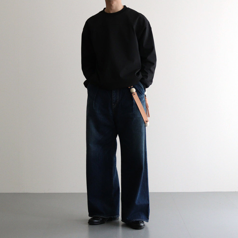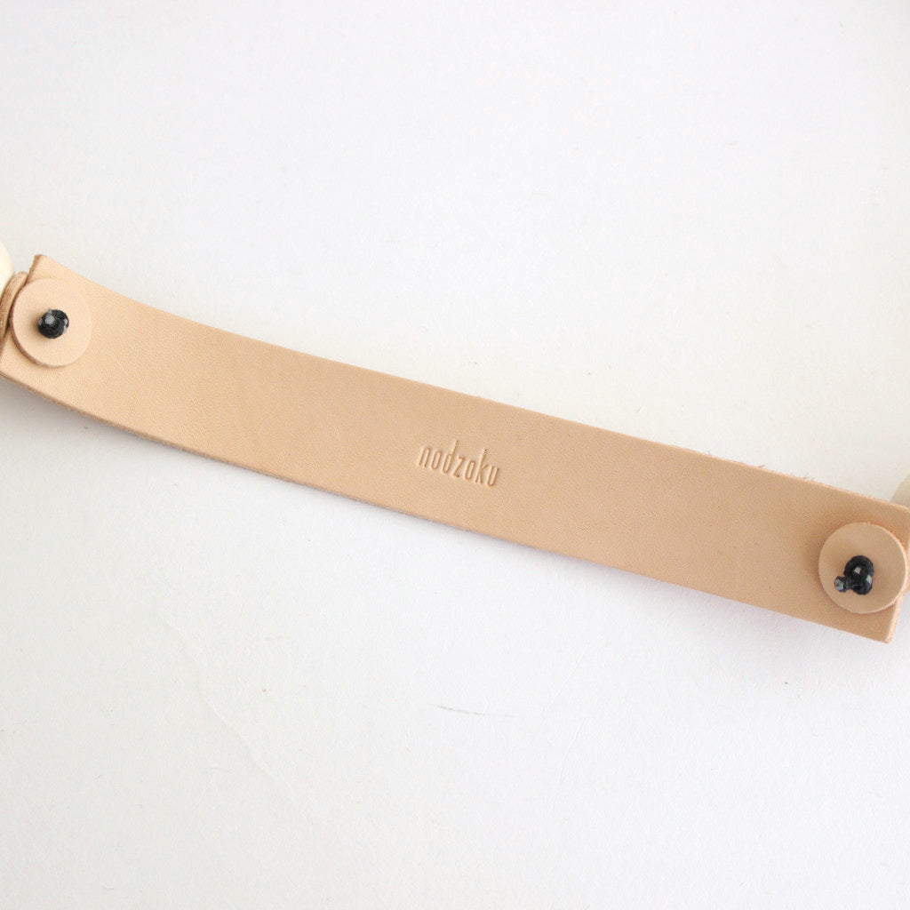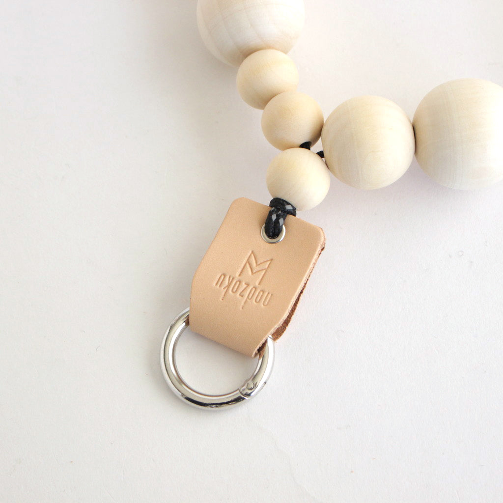 レザーパーツとウッドボールを組み合わせたウォレットチェーン型のレザーアクセサリー。印象的なウッドボールに加えて一部を厚みの少ないレザーパーツに変えることで着座する際にも干渉しにくいよう考慮された気の利いた逸品。