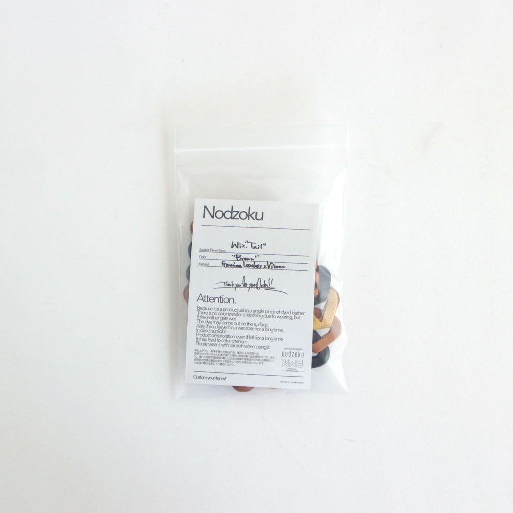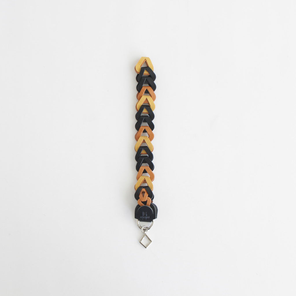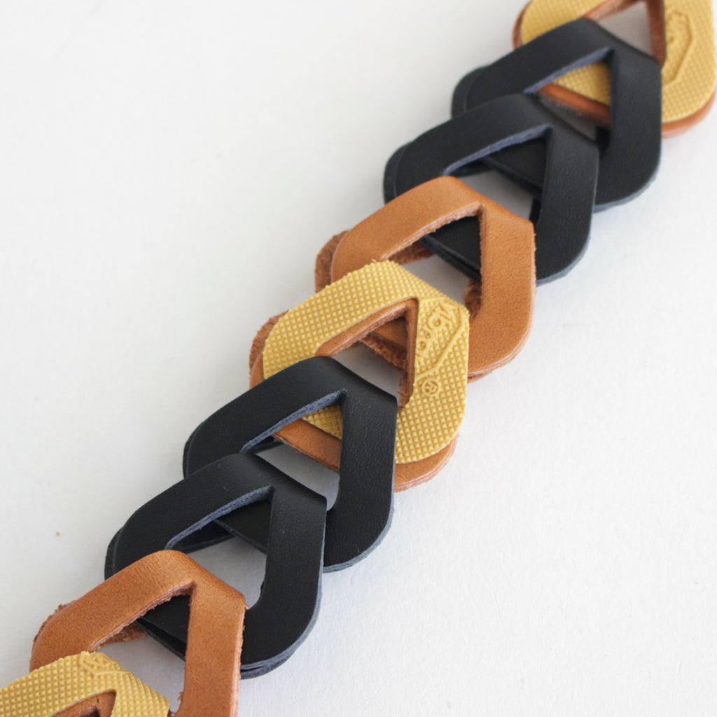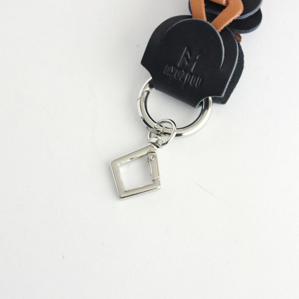 本革と Vibramシートを組み合わせたロングキーホルダー型アクセサリー。ベルトホールにつけて腰回りのアクセントにしたり、バッグなどに付けて楽しむことも可能。