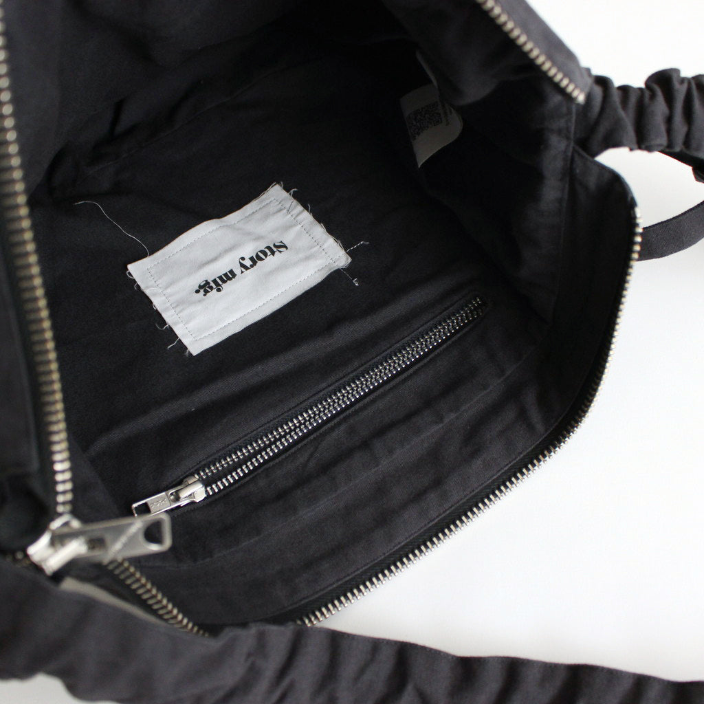 オーガニックコットンのキャンバス生地を使用したショルダーバッグ。大きすぎず小さすぎずの中間的なサイズ感で製作されています。ストラップは好みの位置で結ぶことで長さの調節が可能な仕様に。ポケットが2つ設計されており、メインポケットはジップで開閉式で13インチのラップトップが収納可能。内側にもジップ付きのポケット付き。表側には小さめのパッチポケットが設計されています。