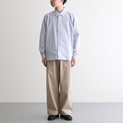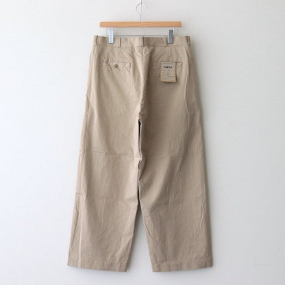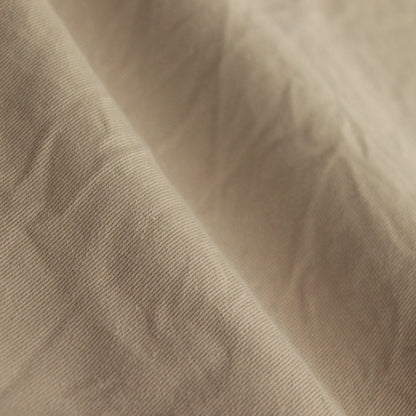 YAECAの定番モデルとして長く愛されているオーセンティックな佇まいのチノパン。糸の選定から生地を織り上げるまでの全工程に拘り、YAECAがオリジナルで製作したコットンチノクロスを使用。シーズンレスに着用可能なレギュラーオンスの生地厚、程良いハリとコシ、織り方と糸の風合いから生まれるYAECAならではの優しく、落ち着いた雰囲気が特徴の生地です。ゆるやかに織り上げた弱テンションのチノクロスを天然染料で染めたボタニカルダイ、天日乾燥仕上げにすることで自然な色合いとシワ感を演出し、生地を馴染ませています。自然の染料を使った特殊な手法の為、色落ちしにくく、ボタニカルダイ特有の色合いと風合いを長くお楽しみいただけます。フロントは脇線に沿って配した実用性に優れたバーティカルスリットポケット、右ポケット付近には「時計隠し」と呼ばれるフォブポケットをデザインしています。バックはボタン留めの片玉縁ポケットです。ボタンフライデザイン。