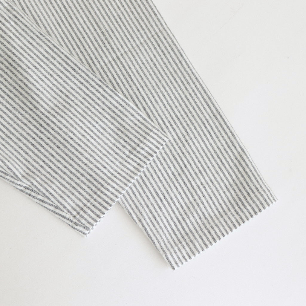 ゆったりとしたリラックスシルエットで製作されたつなぎ型の一着。襟はオープンカラーで前立ては7ボタン仕様。継ぎ目を極力減らすことで凹凸をなくし、就寝時にも快適な着心地を楽しめる作りとなっています。