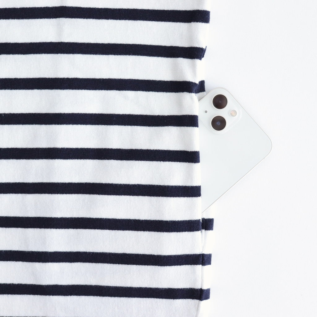 上質なコットン素材を使用したボーダー柄の天竺編み生地を使用。時間をかけてゆっくりと編み上げることで空気を多く含んだ膨らみと柔らかさのある生地に仕上げています。
