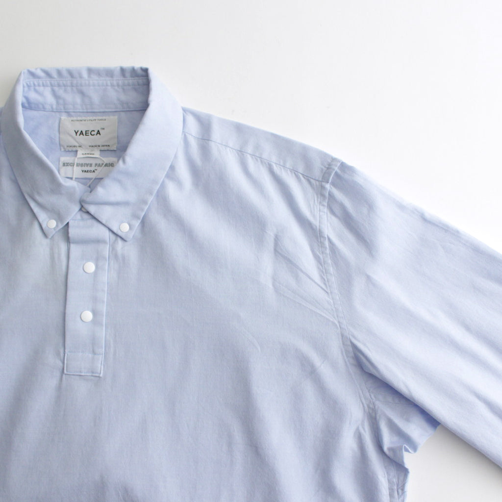 毎シーズン様々な生地やシルエットで展開されるYAECAの定番アイテム。シーズンごとにパターンを見直すなど細部のマイナーチェンジも随時行っており、ブランドの拘りが存分に詰まったシャツシリーズです。一見するととてもシンプルなシャツなのですが、脇線にデザインされたシームポケットや前立てのスナップボタンなどがこのシャツの特徴で、これらが「ヤエカのシャツ」という事をさり気なく主張してくれます。着心地の良さや機能性、シンプル故に長く着続けられる作りなど、長きに渡って愛され続ける理由の詰まった一着です。
