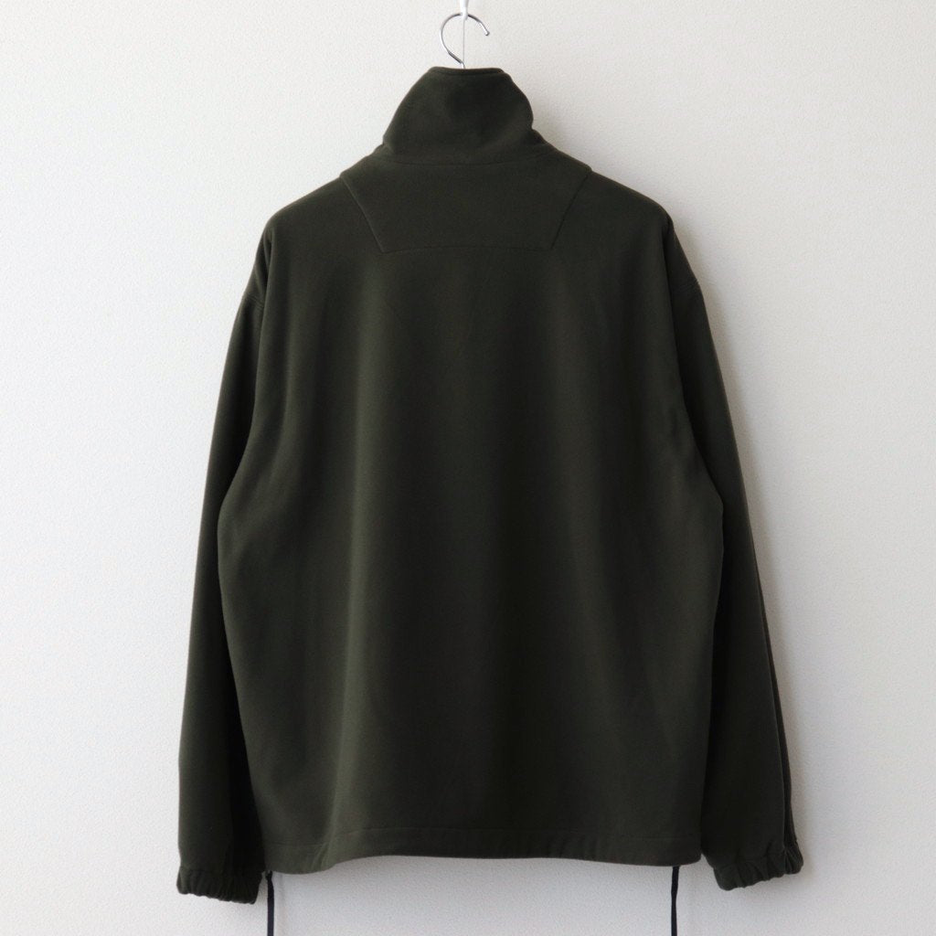 YOKEのフリース。US.Army ECWCS GEN2 LEVEL3フリースをベースに、布帛使いを無くし、ラグランスリーブからセットインに、フロントはプルオーバーに変更させた1着。裾にはドローコードで絞れるようにし、袖口も平ゴムのみにしてスエット感覚で着れるようなアイテムにマイナーチェンジしています。脇にはファスナーがついているので、ベンチレーションとして使用可能。脇線に沿った両サイドにダブルジップを設け、ファスナーを開けることでシルエットに変化を付けたり、ベンチレーションとして使用可能なデザイン。肩周りや身幅、袖幅に大きくゆとりを持たせ、着丈でバランスを調整したゆったりとしたオーバーサイズのボックスシルエット。同素材のパンツとセットアップでルームウェアからそのまま外着として着用出来ます。