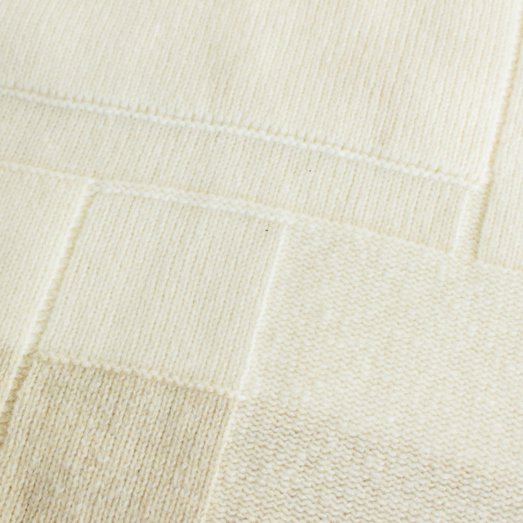上質なウール素材にナイロンをミックスしたニット生地を使用。肌触りが良く弾力のあるウールにナイロンを混紡することで軽さや強度を高めた作りとなっています。箇所によって編地を変えることでつぎはぎのようなテクスチャを表現した中肉のニット生地となっています。
