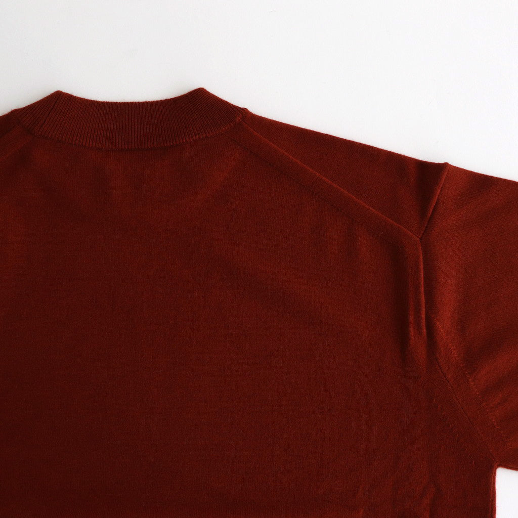 上質なウール素材を使用。時間を掛けてゆっくりと天竺編みにしたフラットなニット生地です。適度に厚みがありながらも柔らかい肌触りが特徴的。異なる色の糸をミックスして使用することで奥行きのある編み地に仕上げています。