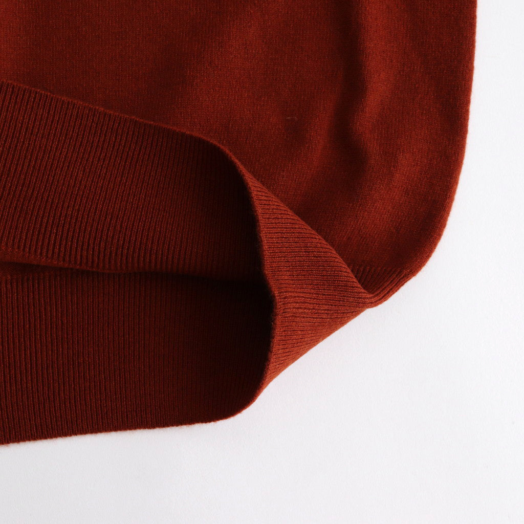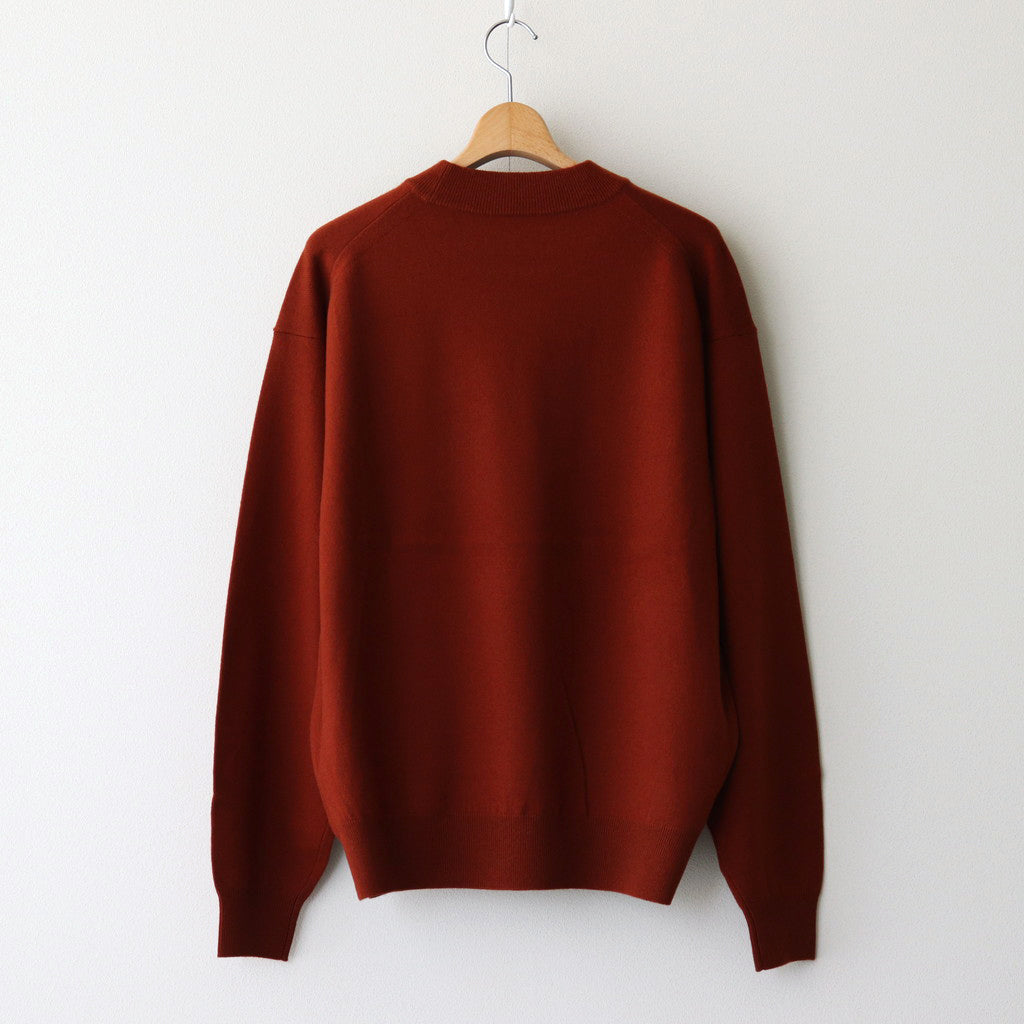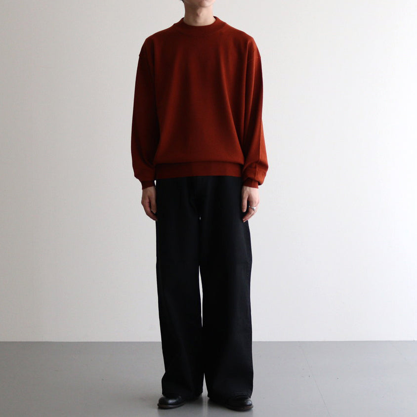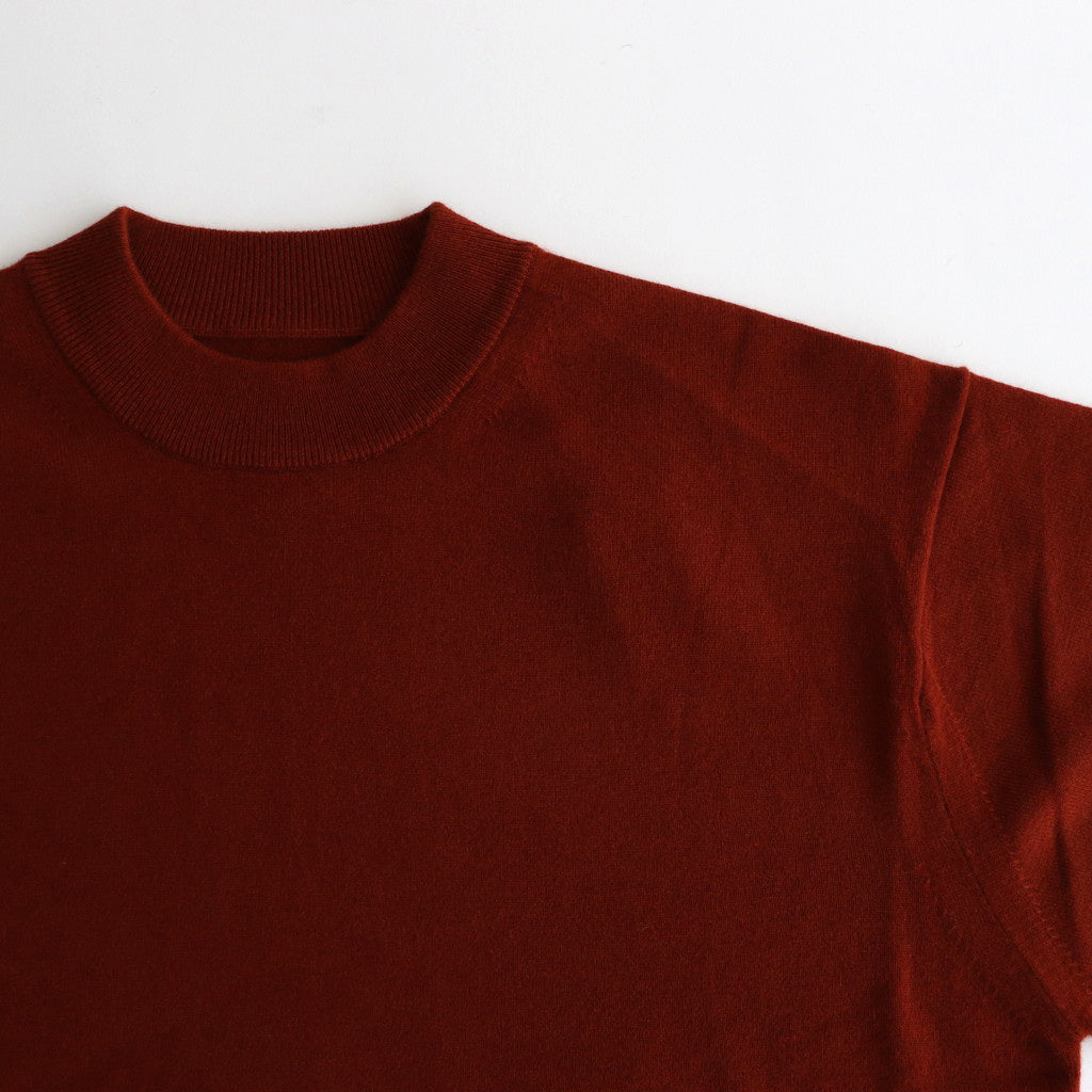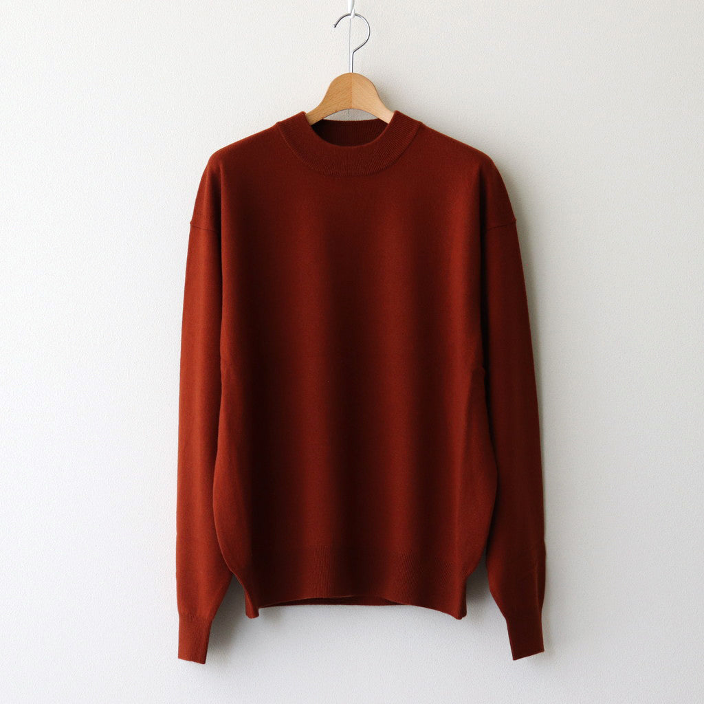 ほどよくゆとりを持たせたリラックスシルエットのモックネックセーターです。ネックは幅の広めなリブ編みに切り替えたモックネック仕様。袖先と裾も同じくリブ編みに切り替えています。