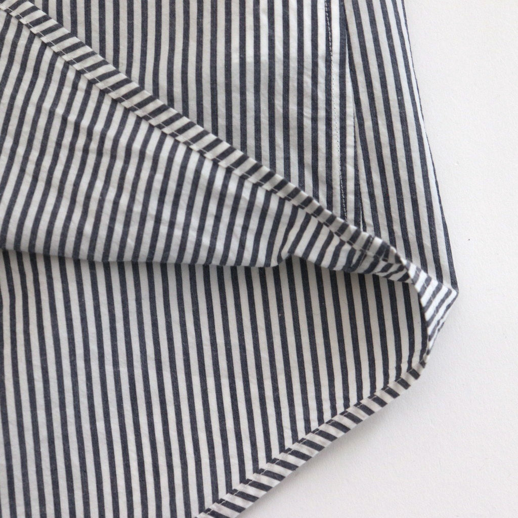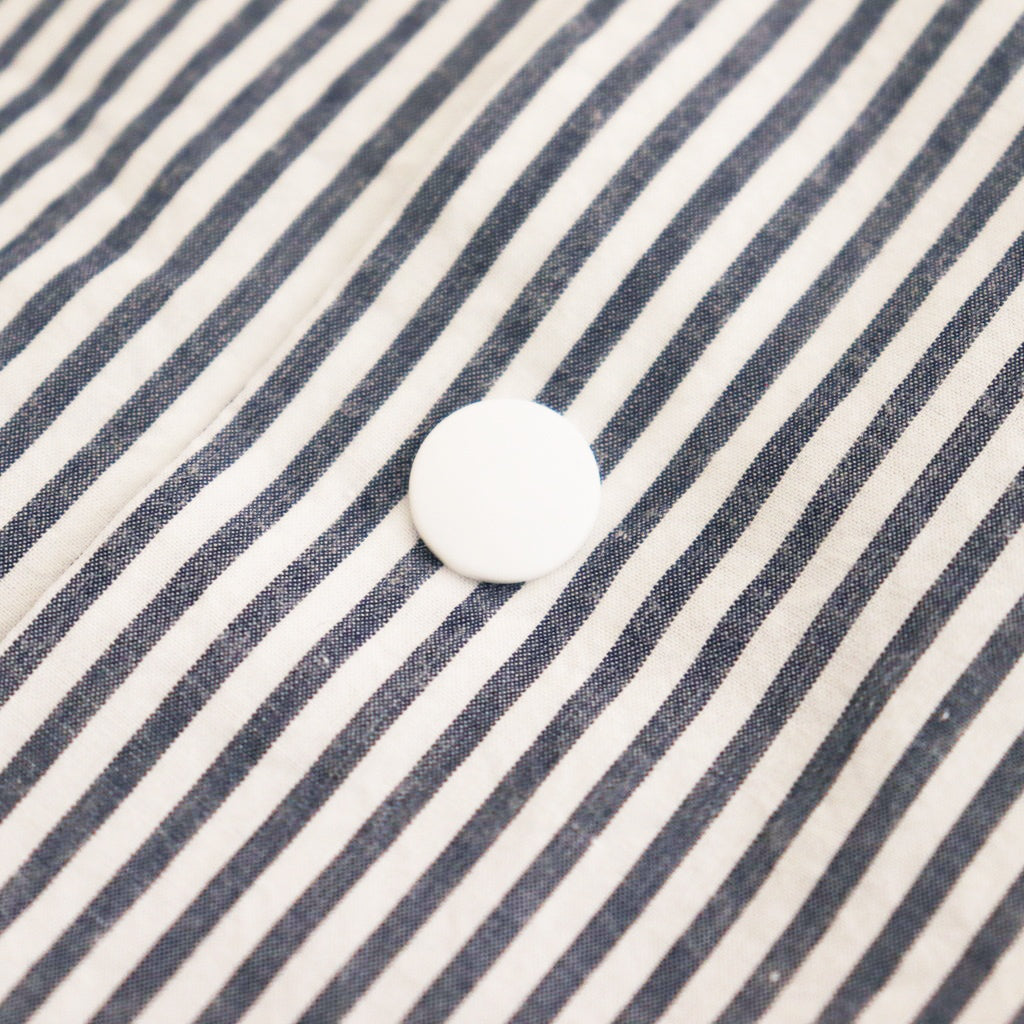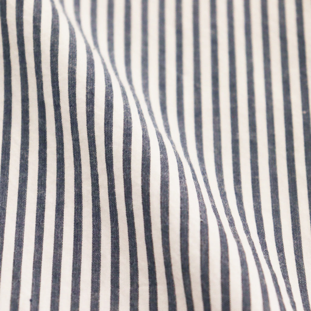 洗いざらしの自然な風合いが印象的なコットンの平織り生地を使用。高密度に打ち込むことで張りを持たせつつ程よい柔らかさがあり、心地の良い着用感と清潔感のある佇まいがお楽しみいただけます。素肌にも着心地の良いサラッとした肌触りでオールシーズン着用可能です。