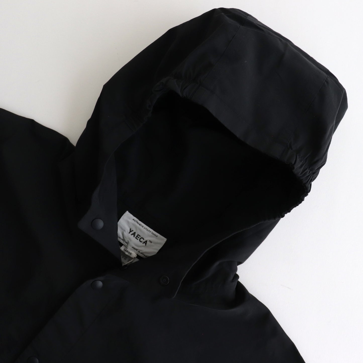 番手の小さい糸を高密度に織り上げたコットン×ナイロンのウェザークロスを使用。ヤエカらしい優しい雰囲気は残しつつも、耐久性や耐水性を持たせることで多少の風や雨除けにも使えるソフトシェル素材です。