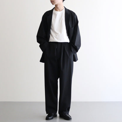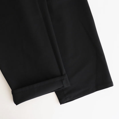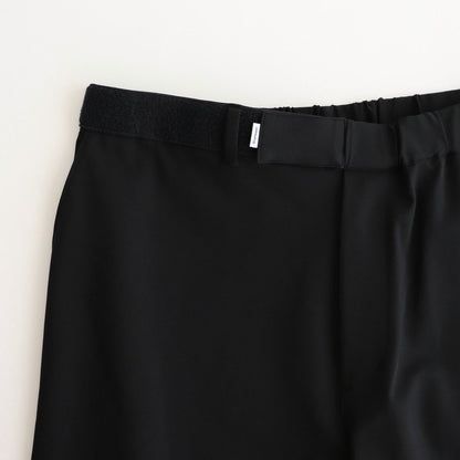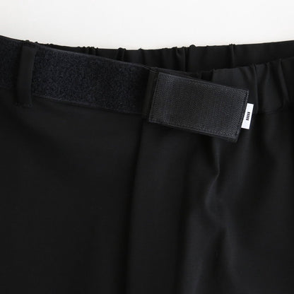 ウエストはベルクロとゴムを使用することでお好みの位置で留められる仕様となっており、自由にフィッティングを変えられる為、どんな体型の方でも綺麗にフィットします。ウエストを広くとっておりアジャスターでギュッと絞ってお好みのシルエット、フィッティングで着用するデザインです。ベルトレスで着用するイージーパンツデザインの為、穿き心地も快適です。