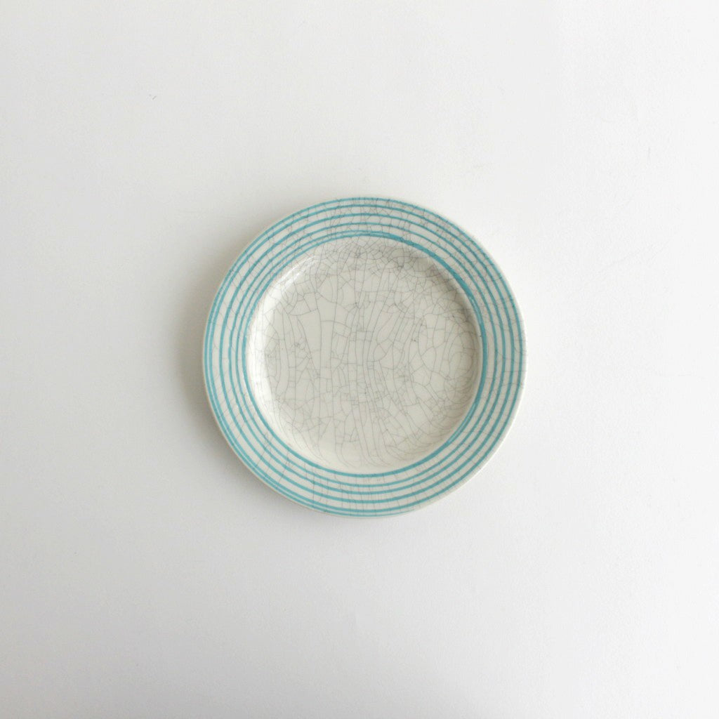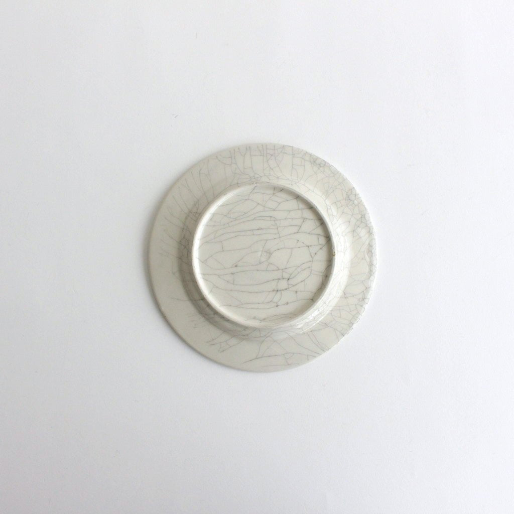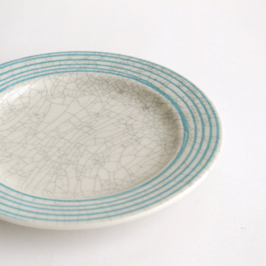 白や黒、ターコイズを基調としたコンテンポラリーなうつわを製作する苫米地正樹。インディアンジュエリーに影響を受ける氏の作品は、釉薬と土の収縮率の違いにより生まれるひび割れに墨を流しこむ「貫入(かんにゅう)」という技法が特徴的。トルコ石に見られる「スパイダーウェブ」の様な模様を表現しています。