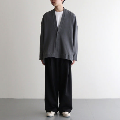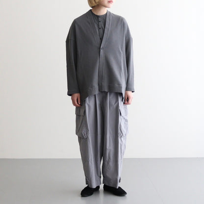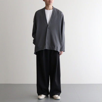 ゆったりとしたオーバーシルエットのVネックカーディガン。様々なトップスの上からバサッと羽織ることのできる万能な一着。脇線の添うようにシームポケットがあり、下部にはスリットをデザイン。着丈に前後差をつけています。