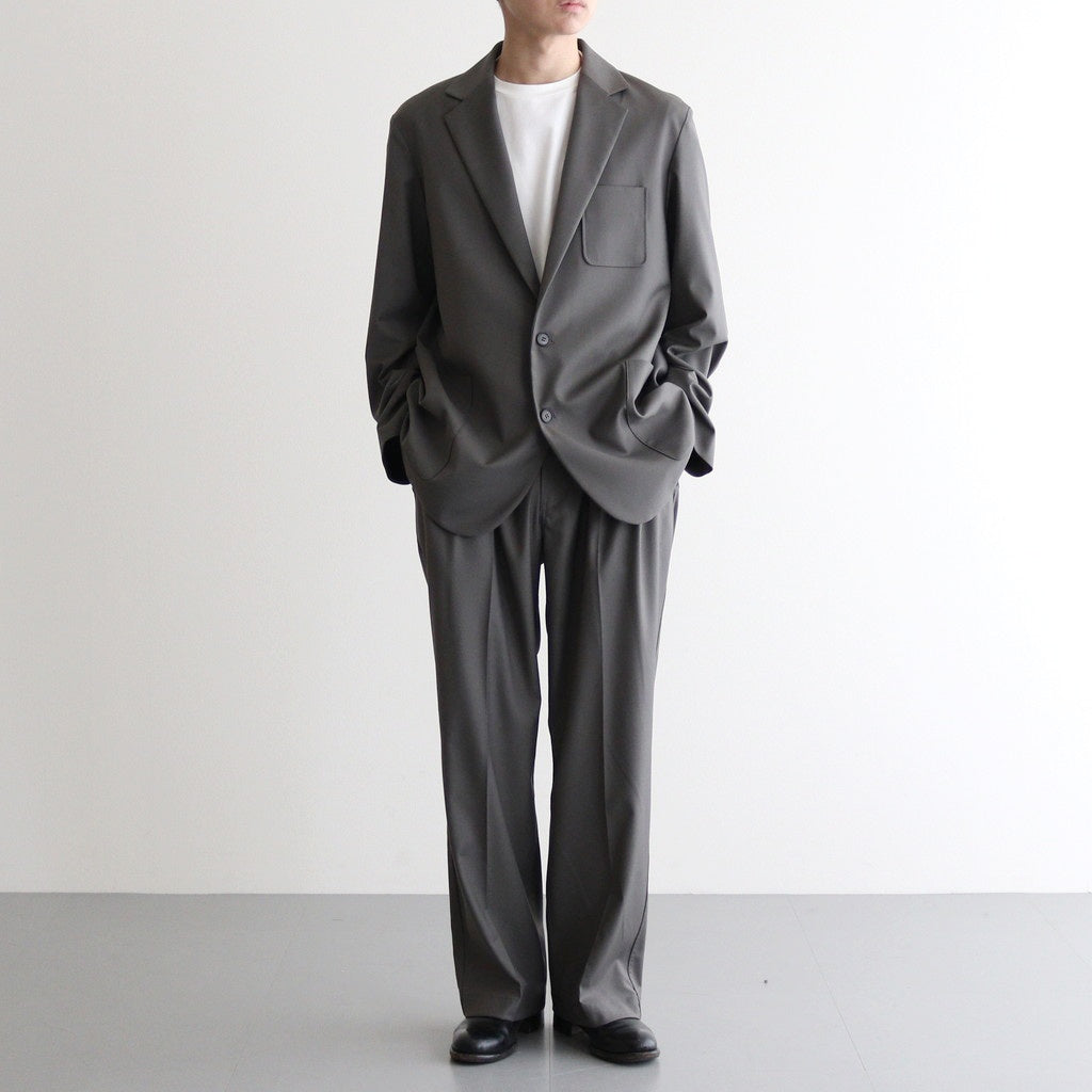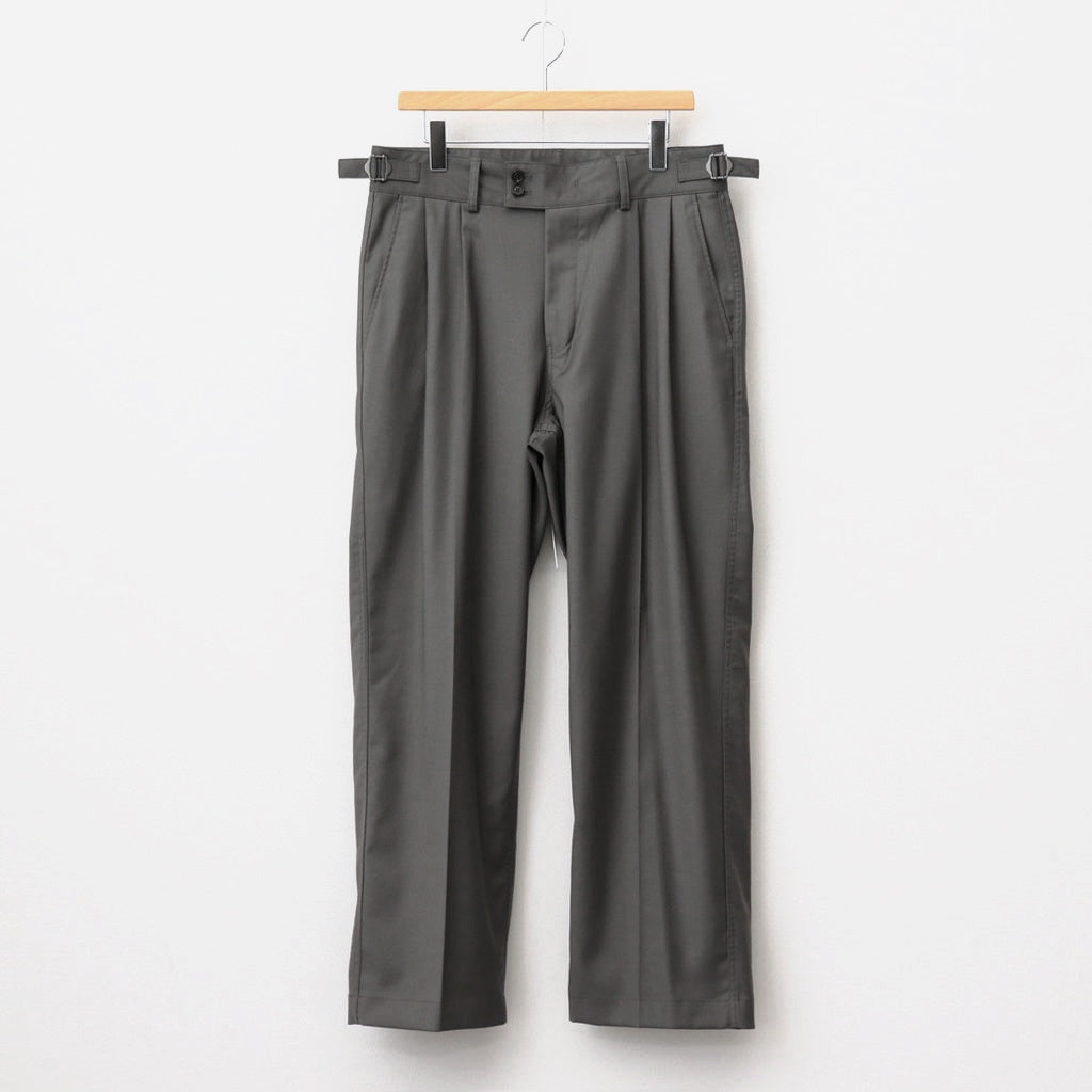 全体にボリュームを持たせ、裾までストンと落ちるワイドストレートシルエットで製作。ウエストにタックをを2つ入れ、包み込むような立体的なシルエットに仕上げています。またウエストは両側のアジャスターでサイズ調節が可能。履きやすさとシルエットの美しさを両立した1本です。
