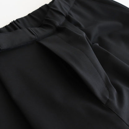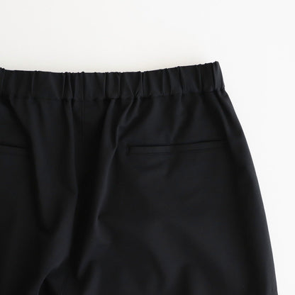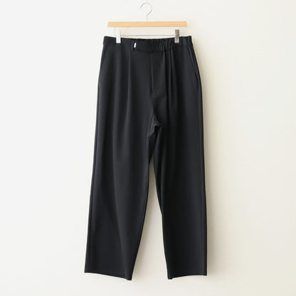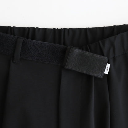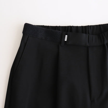 ウエストはベルクロとゴムを使用することでお好みの位置で留められる仕様となっており、自由にフィッティングを変えられる為、どんな体型の方でも綺麗にフィットします。ウエストを広くとっておりアジャスターでギュッと絞ってお好みのシルエット、フィッティングで着用するデザインです。ベルトレスで着用するイージーパンツデザインの為、穿き心地も快適です。