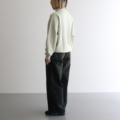 上質なコットン原料を使用したライトオンスのデニム生地を使用。ストーンウォッシュ加工を施した後にオーバーダイで色を乗せることで着古したようなフェード感とコシの抜けた柔らかい質感を表現しています。