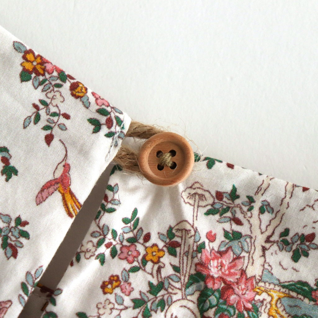 LIBERTY LONDON社の平織素材を使用。柔らかく軽やかな肌触りが特徴のコットンファブリックです。手描きのタッチで繊細なウォッシュカラーの不思議な自然を描いたminiature wonderlandという名前の総柄生地です。