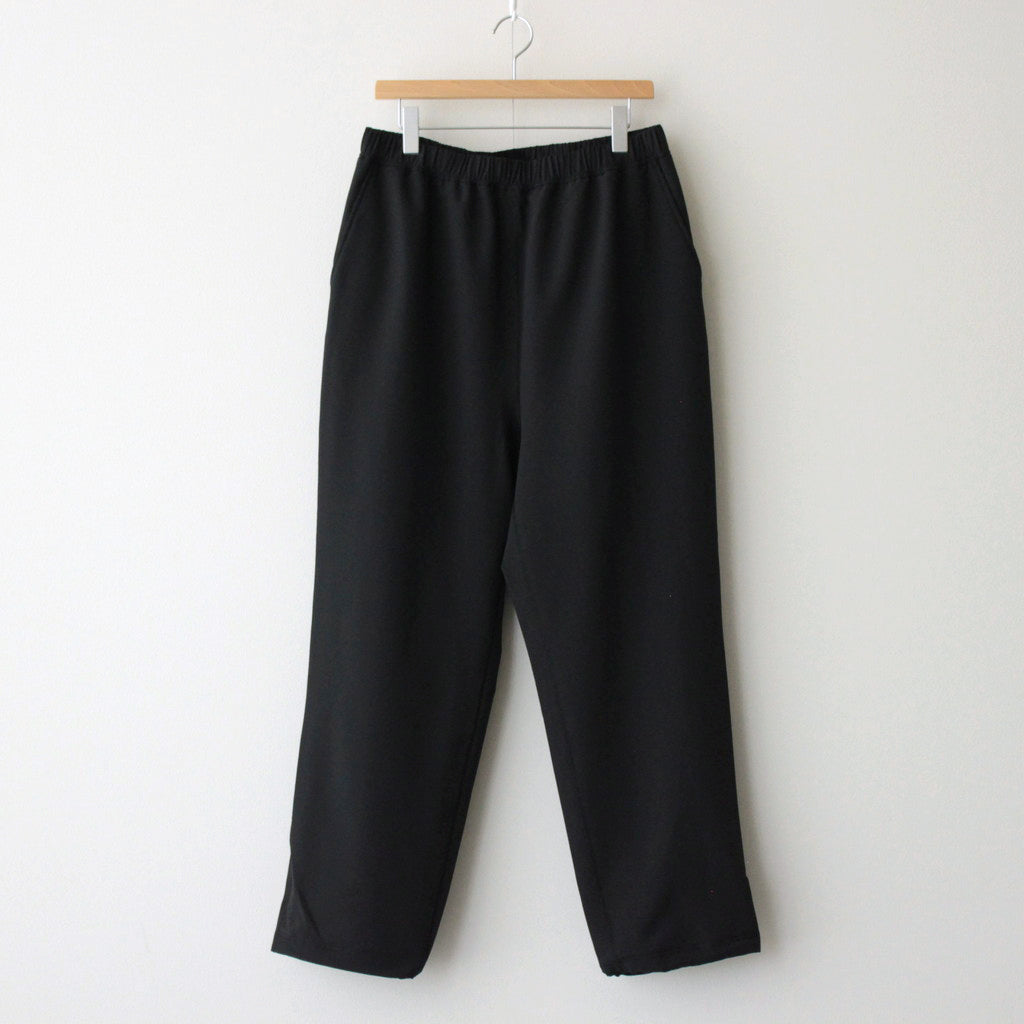 ゆったりとしたボリューム感のあるシルエットで製作されたイージーパンツ。腰まわりから裾までボリュームのあるシルエットとなっており裾のドローコードにより絞りの調整が可能。ウエスト両サイドにスラッシュポケットと背面両サイドにもジップ付きのポケットを設計。