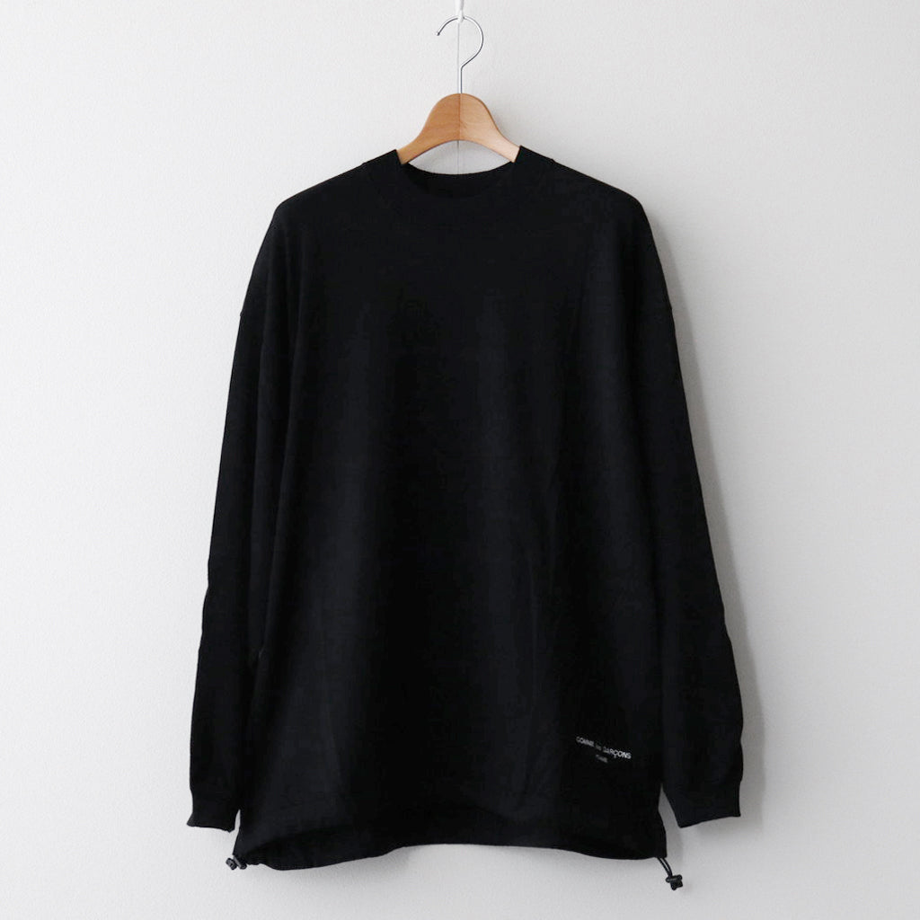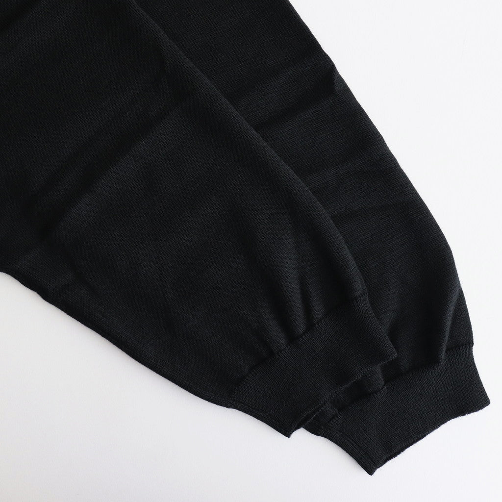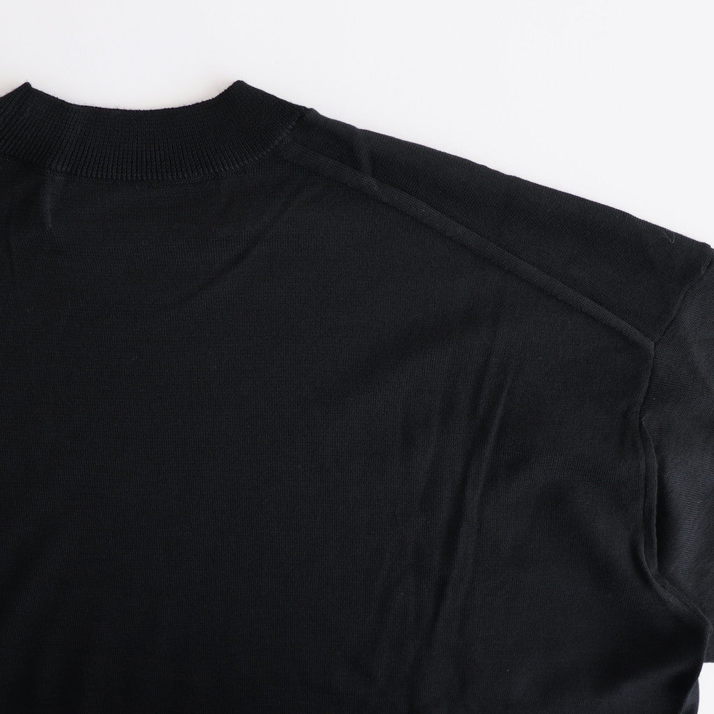 ポリエステルと梳毛ウールをブレンドとした軽やかな風合いの天竺編み生地を使用。強度や発色に優れたポリエステル糸に綺麗に引き揃えたウールを混ぜ込むことによって品の良さと着心地を向上させたニットです。