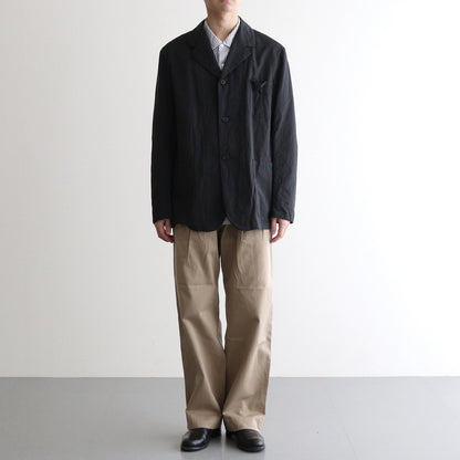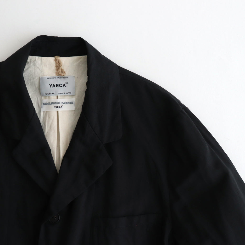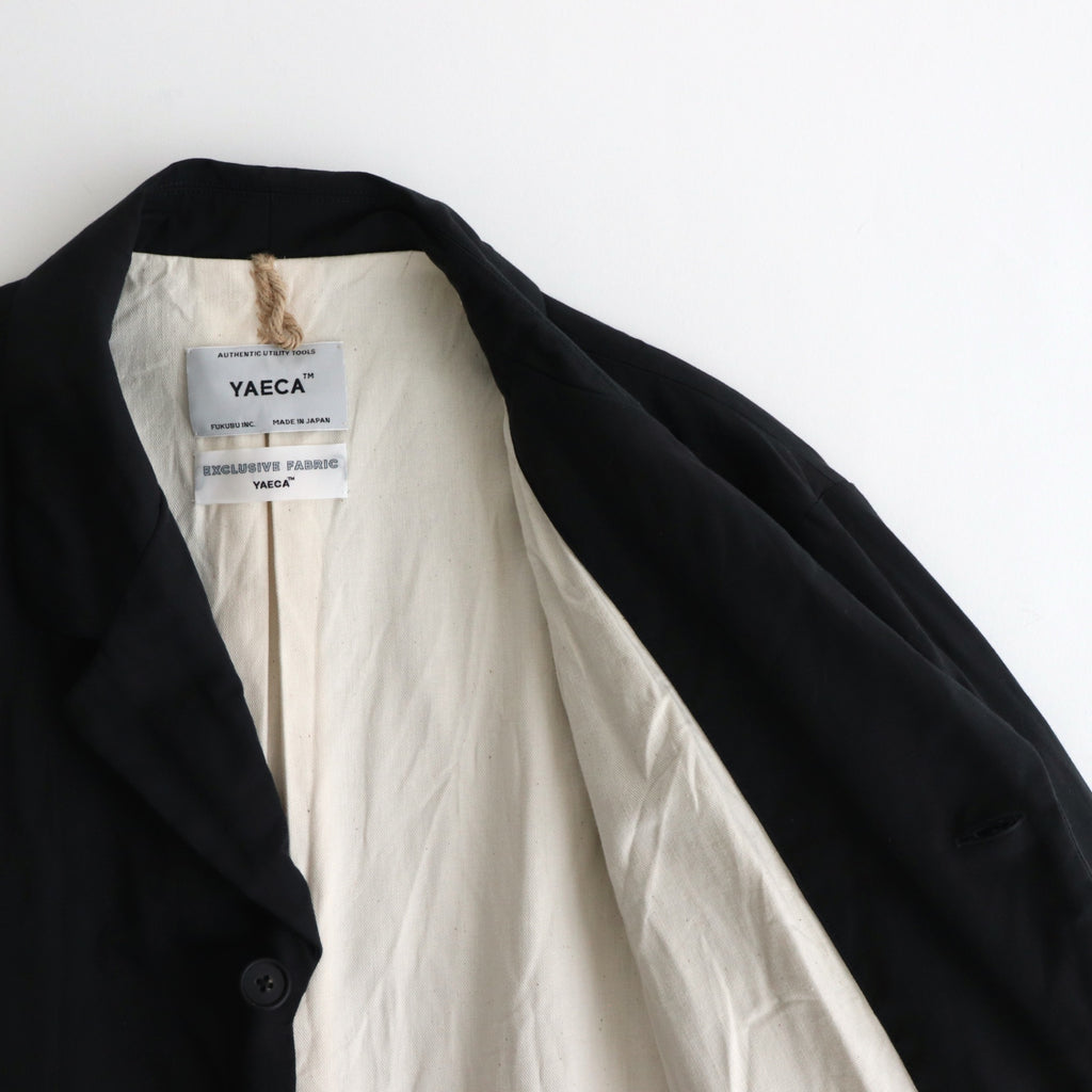 ほどよくゆとりを持たせたリラックスシルエットの3ボタンジャケット。控えめな大きさの襟は身頃と一体で製作されており、素朴な雰囲気に仕上げられています。身頃両サイドに共生地のパッチポケットを設計。シンプルな仕立てと生地の風合いがYAECAらしい気取らない雰囲気のジャケットです。