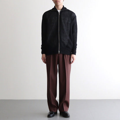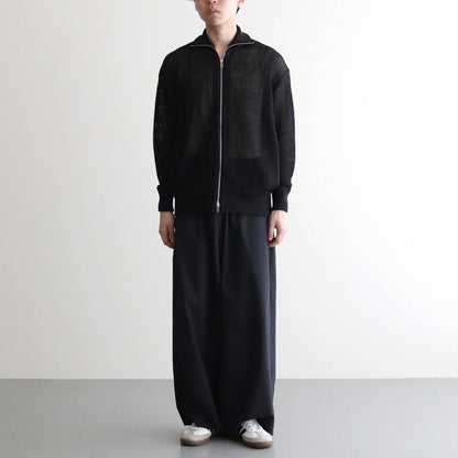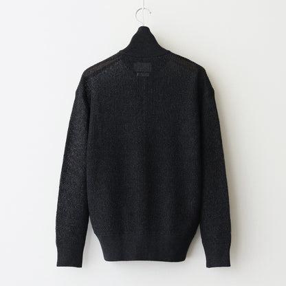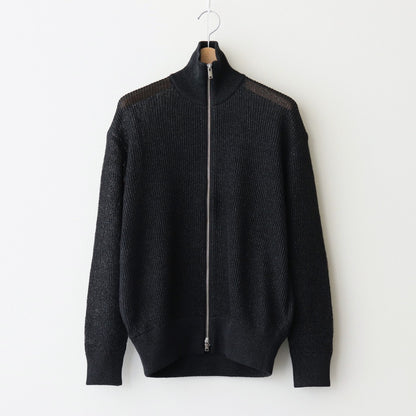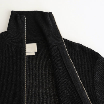 清涼感のある素材使いのシアードライバーズニット。サイズ感を少しコンパクトめに設計しすることでインナーとしても着用できるサイズ感に。フロントZIPはオリジナル刻印入りスライダーを使用。脇線にシームポケットつき。