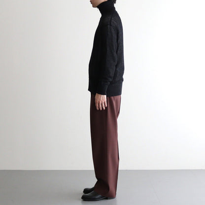 和紙素材とモダールをブレンドした撚糸を使用。透け感のあるミドルゲージの片畦編みで仕上げたニット素材です。モダールは環境負担の掛かる薬剤を一切使用しないセルロース繊維。レーヨンのような機能性と美しさを持ちながら、水洗い洗濯可能なイージーケア性も魅力。和紙とモダールを合わせることで和紙のハリ感を残しつつも、モダールの落ち感のある風合いを加え、シャリ感ととろみを融合させたニットです。