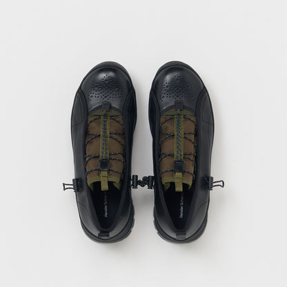 フィッティングに必要な甲を抑える部分にターポリン素材とリフレクターコードを採用。Hender Schemeならでは蓄積した知見から発想された方法で、余らせて絞る新しい技法のシューズです。