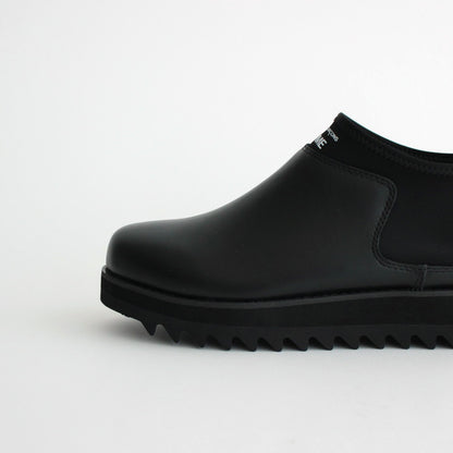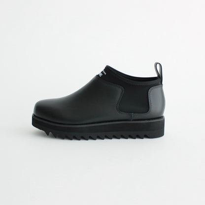 アッパーには油分をたっぷりと含ませたスムースレザーを使用。接ぎの少ないミニマルな見た目で仕上げており、サイドのゴム部分からインナーパーツを繋げるように配置しフィット感を高めた作りに。ソールは悪天候時にも安心なビブラム社製のシャークソールを採用。