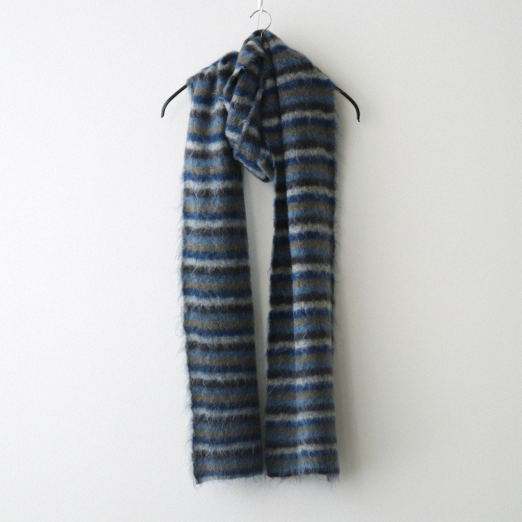 コレクションの着想源となったピエール・スーラージュ氏の作品の色味で5色の配色を組んだ細ピッチボーダーの大判ストールです。大判のため首にシンプルに巻くだけでなく頭までカバーしたり肩掛けしたり、ひざ掛けのように使用することも可能。