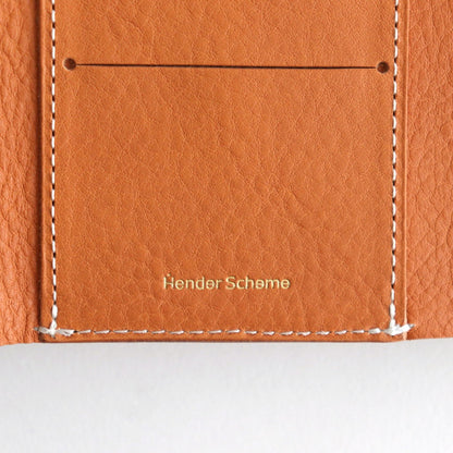 デザインは外付けのフラップ付き小銭入れが付属する3つ折り型。シンプル故の使い易さをお楽しみいただけます。手にすっぽりと収まる持ちやすく使いやすい大きさが特徴です。Hender Schemeの箔押し入り。