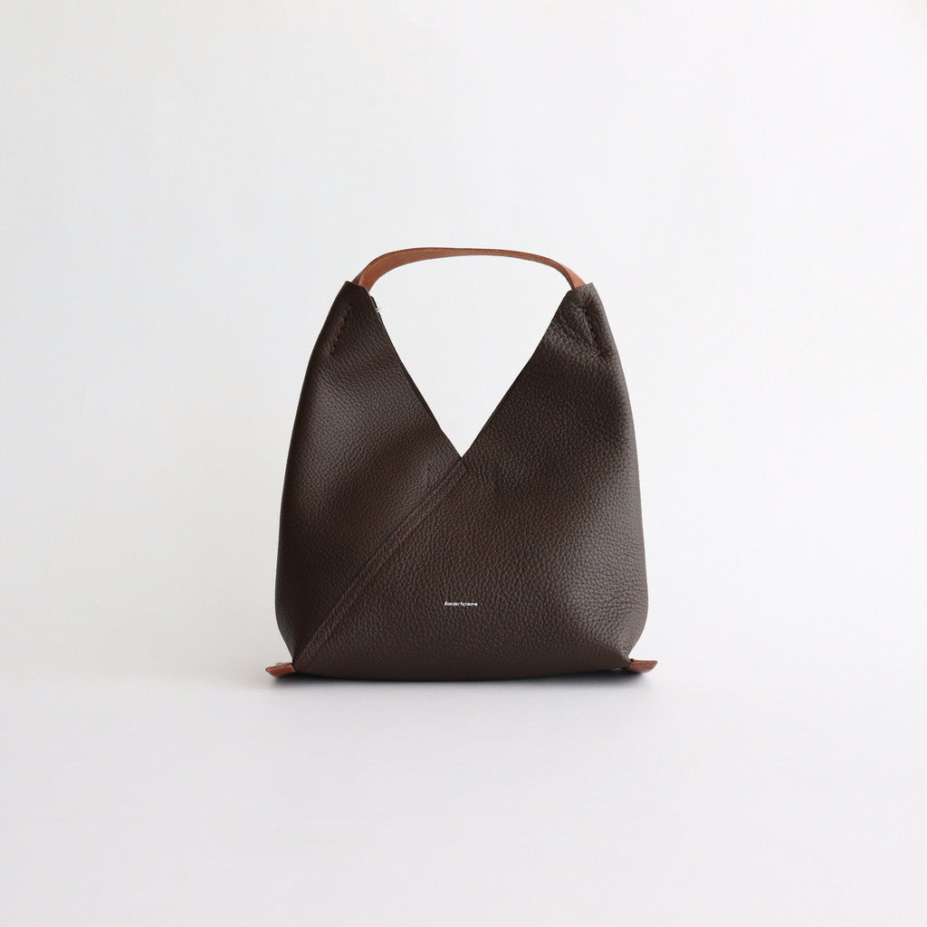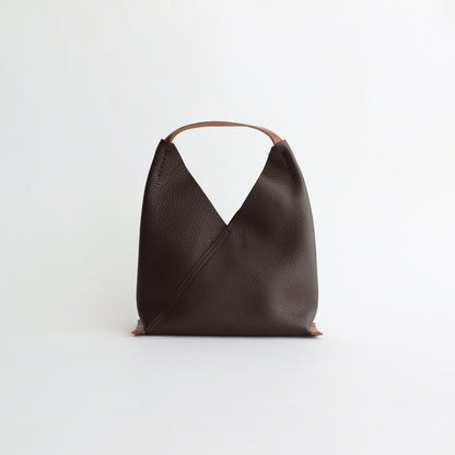 バッグ本体にシボ感のあるカウレザーを使用した三角形のハンドバッグ。