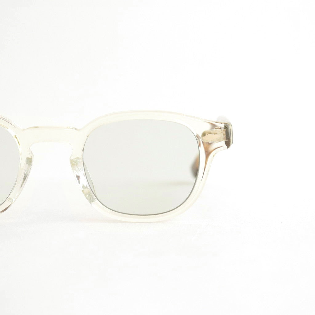 ブランドのアイコニックなポイントの一つでもあるUVに反応してカラー変化する調光レンズ仕様。UVの無い環境では薄くグリーンがかったグレー、UVに反応するとダークグレーへと変化します。