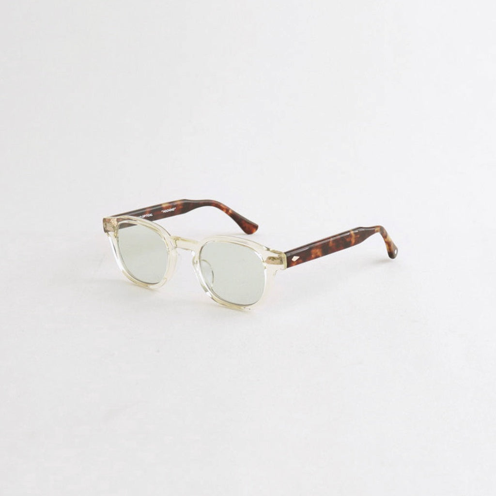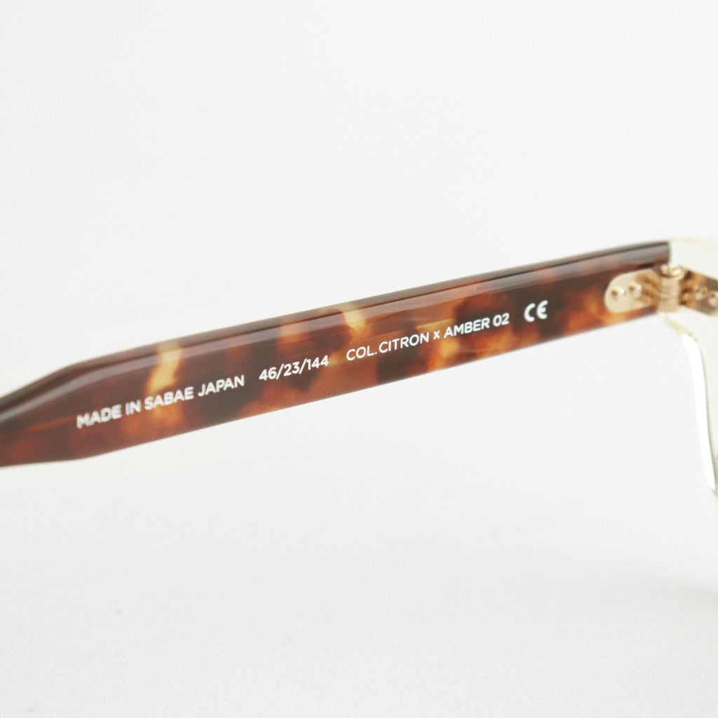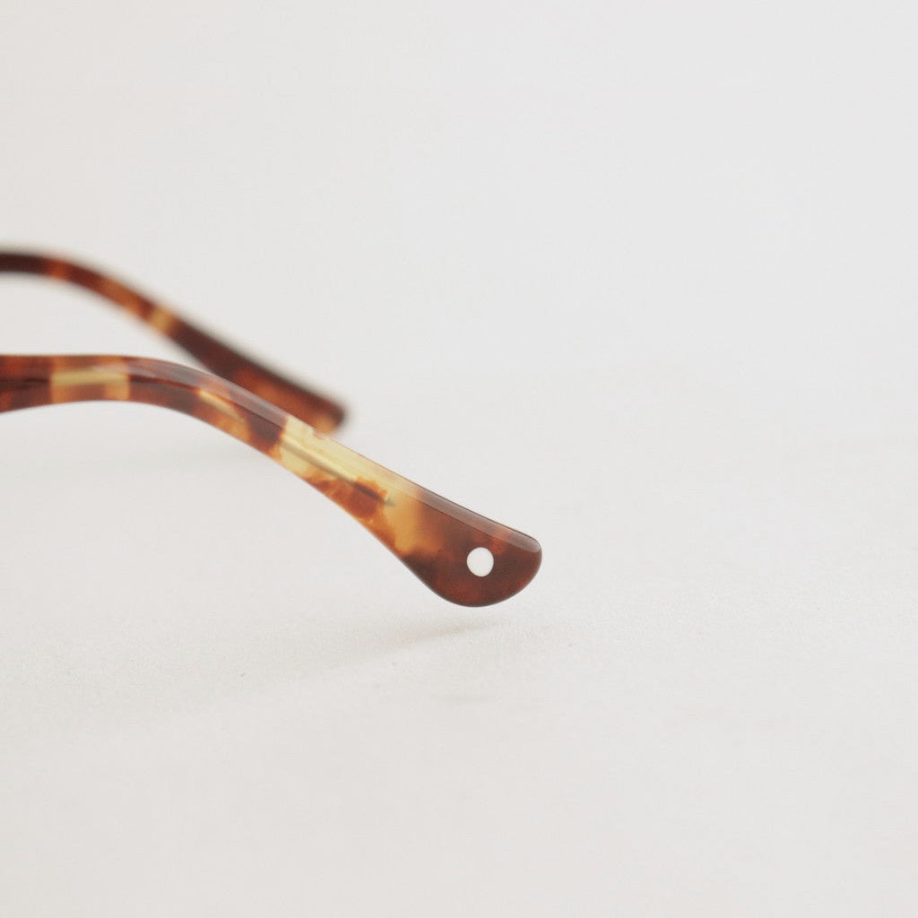 NOCHINO?OPTICALブランドを象徴する2カーブレンズはフラットでもなく一般的なカーブタイプでもない仕上がり。美しい曲面で昔の手削りガラスレンズの名残りを感じることのできる光り輝く表面感。レンズシェイプも5mmのフロント厚に、4mmのテンプル厚という繊細な強弱を持たせたクラシックなスタイルです。