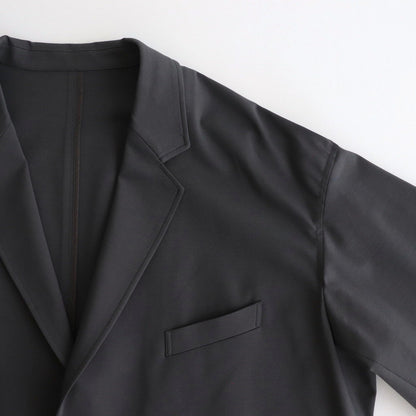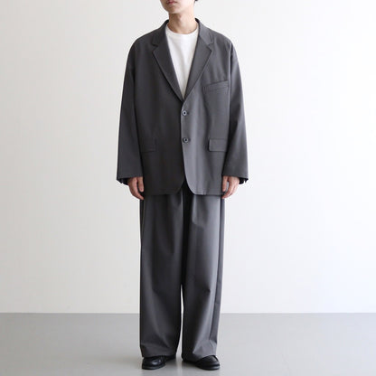 ブランドらしいワイドなドロップショルダーで製作されたテーラードジャケット。生地とシルエットにより着心地も良く動きやすいためアクティブなスーチングスタイルが楽しめる一着です。身頃両サイドにフラップ付きのポケットを設計。左側に胸ポケットと内ポケットも搭載。