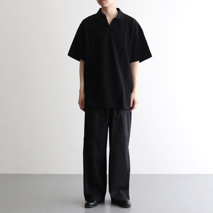 ゆったりとしたワイドシルエットのスキッパーポロシャツ。ほどよい大きさの襟と深すぎず浅すぎずのVネックが特徴的。