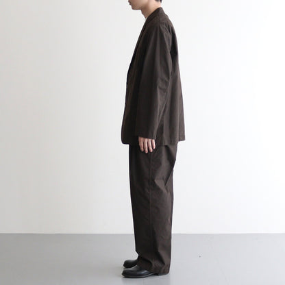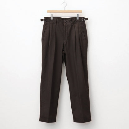 全体にボリュームを持たせ、裾までストンと落ちるワイドストレートシルエットで製作。ウエストにタックをを2つ入れ、包み込むような立体的なシルエットに仕上げています。またウエストは両側のアジャスターでサイズ調節が可能。履きやすさとシルエットの美しさを両立した1本です。