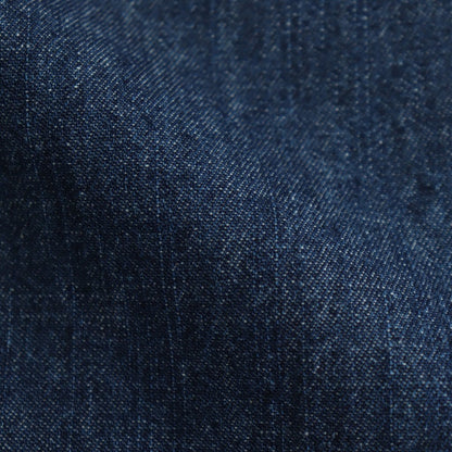 薄手のインディゴデニムを使用した夏場にも着やすいデニム素材です。ほどよく青さがあり、着用と洗濯を重ねるごとに風合いも着心地も良くなる素材です。