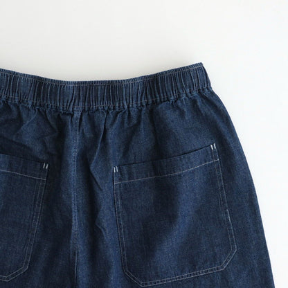 ゆったりとしたシルエットのデニムイージーショーツ。ウエストはゴムとドローコードで調整可能。ストレスフリーな穿き心地に加え、ワークウェアに着想を得た力強いステッチワークや、使いやすい斜めのフロントポケットがデザインのアクセントになっています。ラフさの中に程よい存在感を持たせた、日常使いにもレジャーにも活躍する汎用性の高いショーツです。