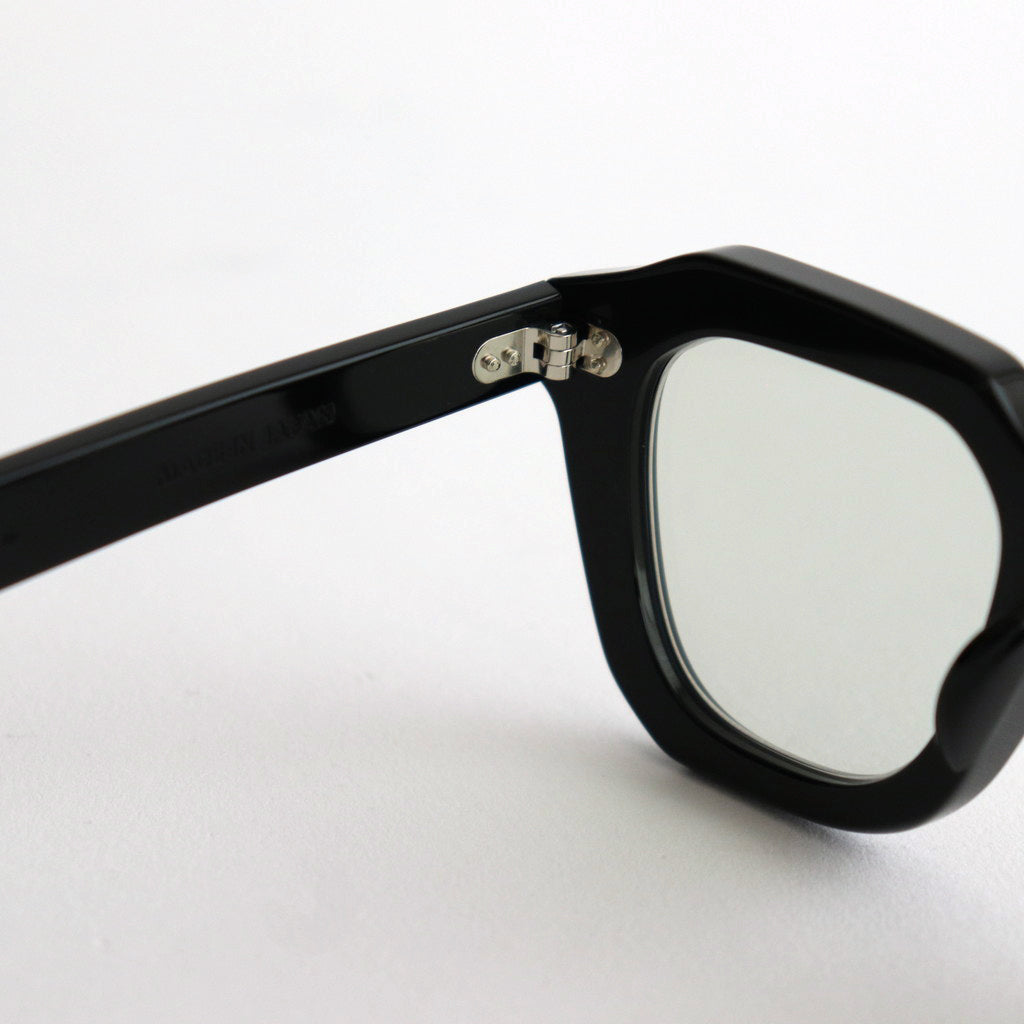 レンズはデモレンズではなく初期の状態からguepardが特別に製作したフラットレンズを装着。そのまま伊達メガネとしての使用が可能です。この特別なレンズは裏面にだけマルチコーティングを施し、レンズ表面は無垢状態のままにすることでコーティング技術が無い時代の雰囲気を再現した仕様となっています。