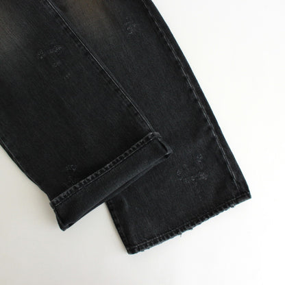 独特の加工感が特徴のオリジナルデニム生地を使用。ストーンウォッシュやブリーチ、オーバーダイ、吹付け、手作業によるダメージ感など、様々な加工を施すことで奥行きのある表情に仕上げられています。
