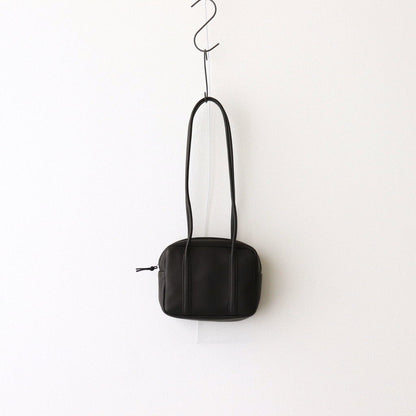 丸みを残したスクエア型のバッグに、長めのストラップを取りつけたショルダーバッグ。開口部には光沢のあるジップを採用し上品な雰囲気に。バッグ内部は片側にポケットが設計されており、シンプルで使いやすい作り。おでかけの際に必要なものを入れて持つだけで気分を上げてくれる手軽で品のあるバッグです。