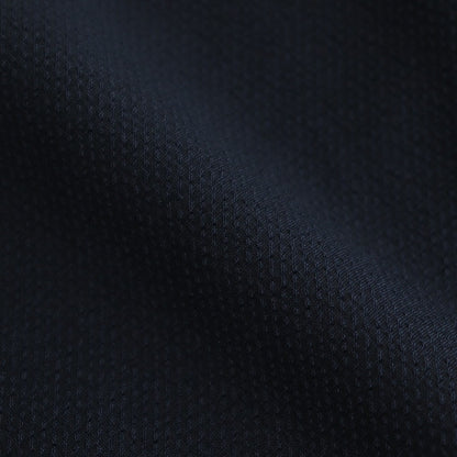 特徴的な凹凸感のあるシアサッカー生地を使用。ポリエステル素材を使用して平織に織り上げ、仕上げに生地を縮ませることで独特のシボ感を表現した生地です。肌との接地面積が小さくさらっとした肌触りで、清涼感のある春夏にぴったりな風合いがお楽しみいただけます。伸縮性や速乾性も魅力。