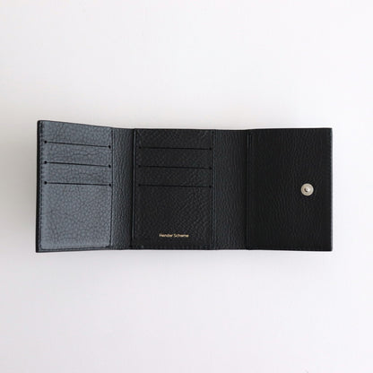 デザインは外付けのフラップ付き小銭入れが付属する3つ折り型。シンプル故の使い易さをお楽しみいただけます。手にすっぽりと収まる持ちやすく使いやすい大きさが特徴です。Hender Schemeの箔押し入り。