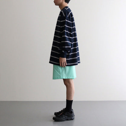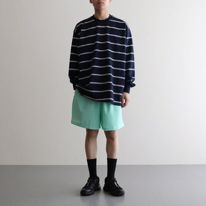 マットな質感で柔らかな肌触り、吸水性と速乾性に優れたポリエステル×ポリウレタンのファブリック。パンツ内側にはメッシュライナーが張られており、水陸両用のショーツとして夏場いに活躍する生地です。