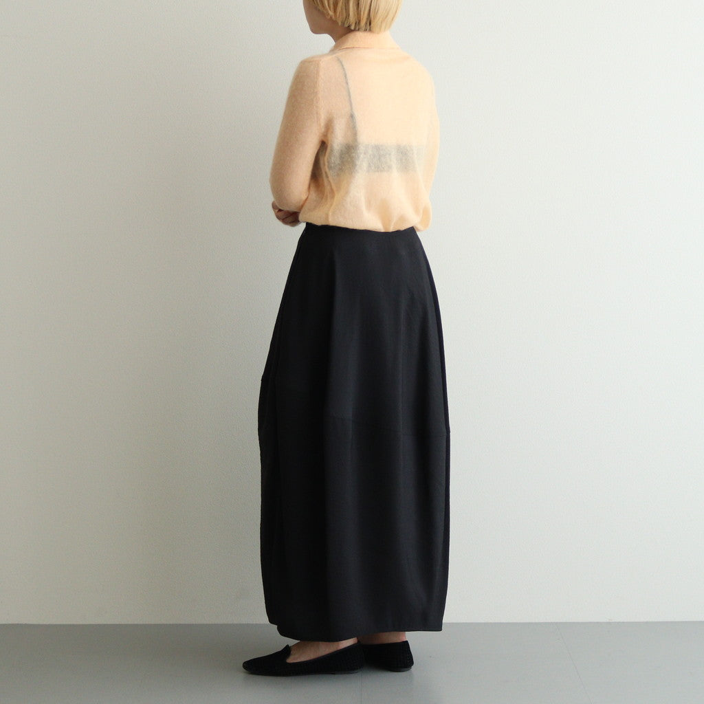 南アフリカ産のキッドモヘヤ原毛を極細のタム糸に紡績し編み立てた程よい透けのあるニットです。繊維が細くモヘヤ特有のちくちく感が少ない滑らかな風合いと繊細で上質な透け感が特徴です。