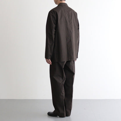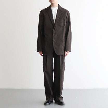 シンプルなレギュラーフィットの2ボタンジャケット。着用者の肩に沿うよう流れるようなシルエットと上品な落ち感を目指したパターンワークが特徴的。ほどよくゆとりのあるフィット感ながらすっきりとしたシルエットがお楽しみいただけます。左胸と身頃両サイドにパッチポケットを、左側のみ内ポケットも設計されています。